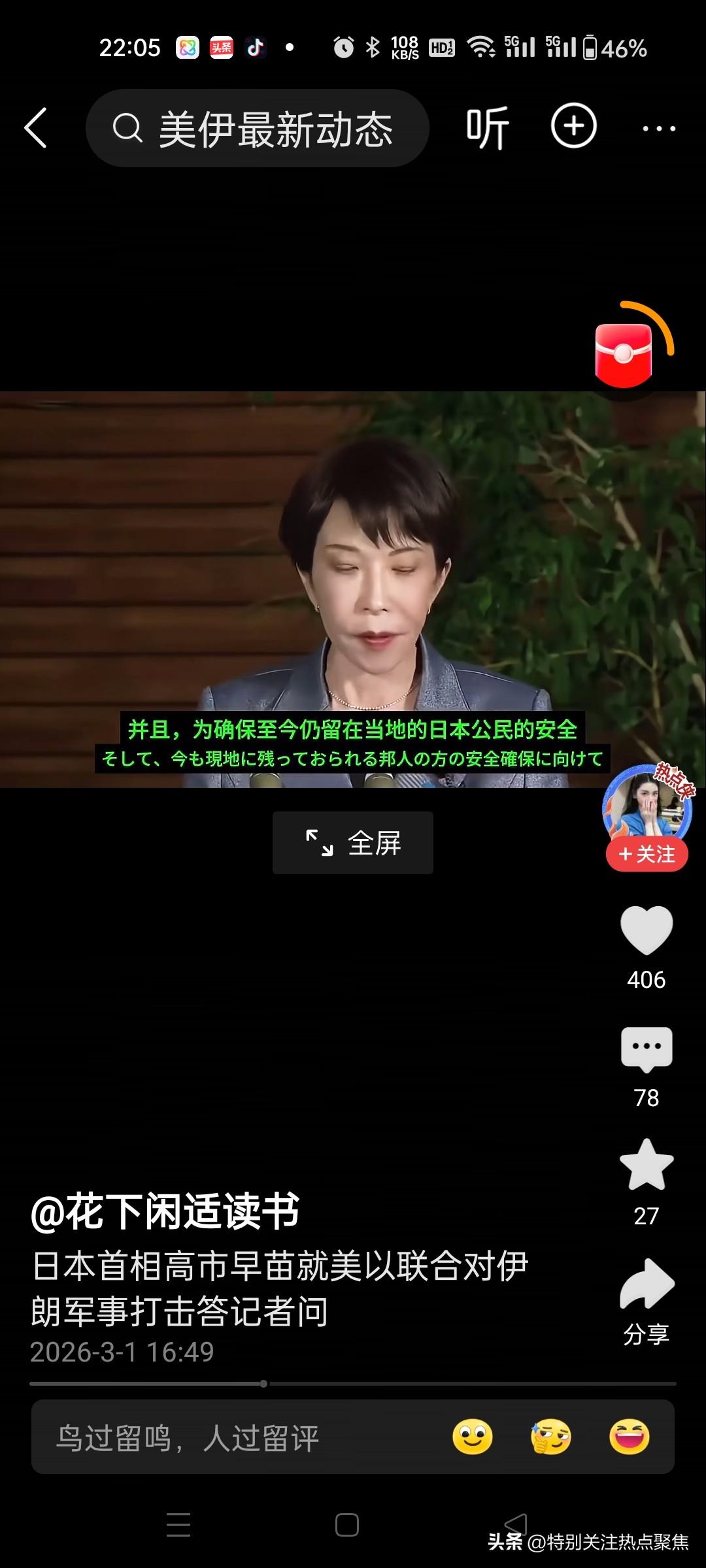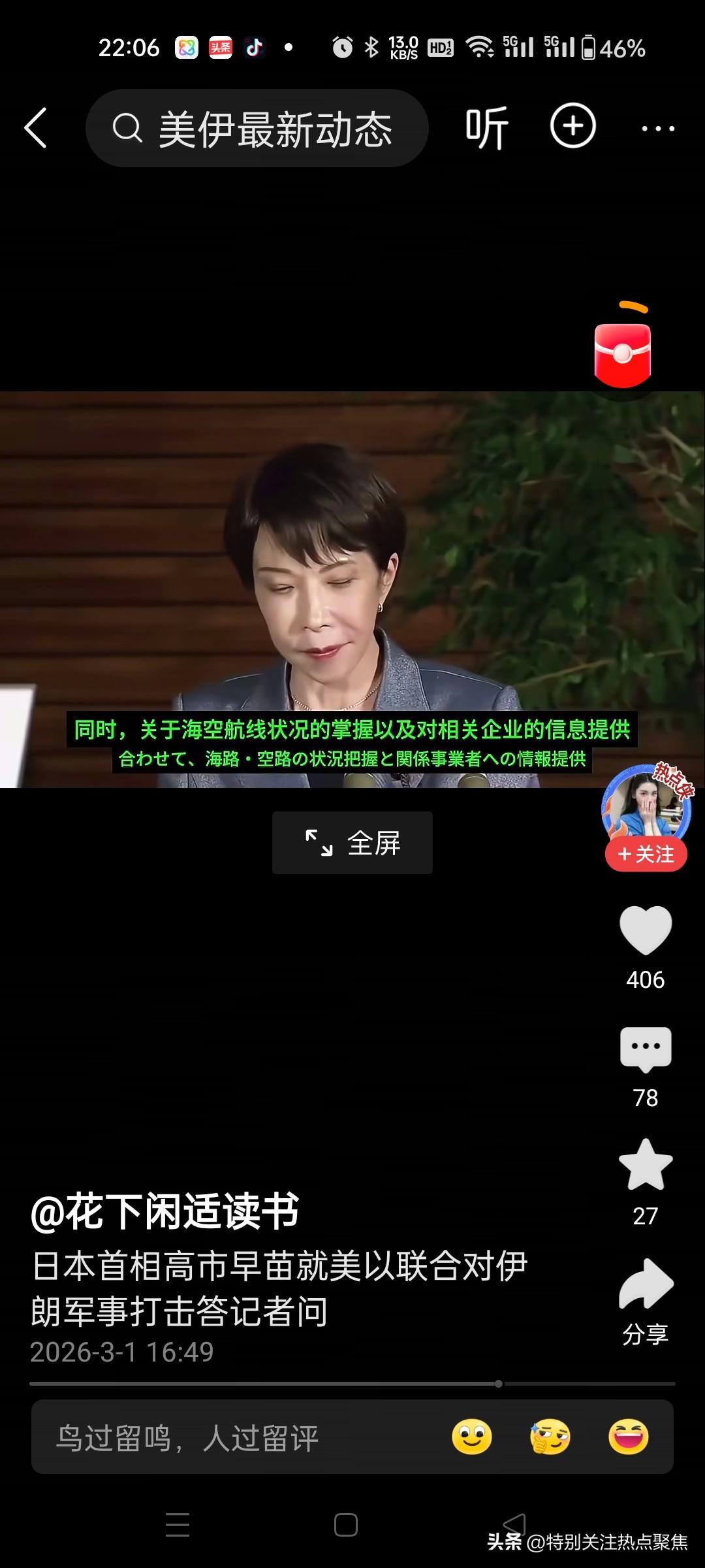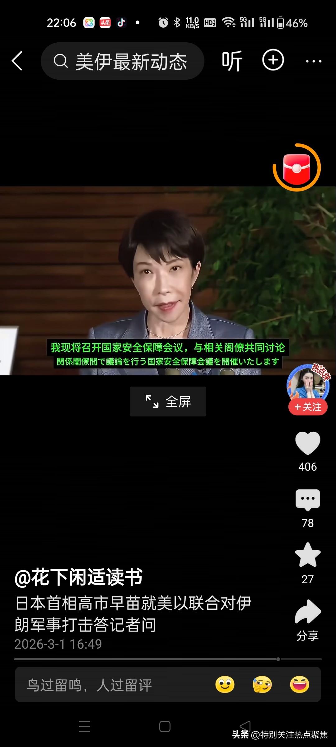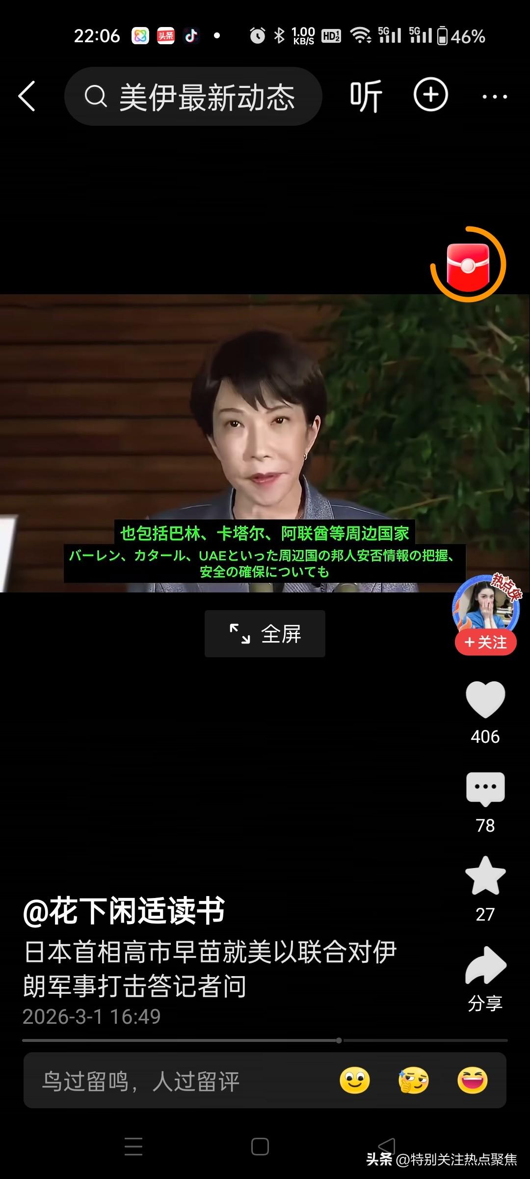 日首相高市早苗就伊朗被袭答记者问,日本中立,既不谴责,也不批评,关心的是日在伊侨