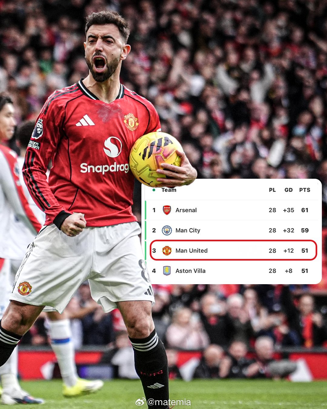 曼联2比1水晶宫 曼联击败水晶宫后升至英超积分榜第三位🤯利马养伤未上场。利桑德