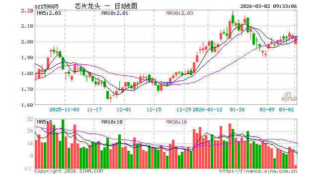 3月2日,半导体龙头ETF工银(159665)开盘跌2.75%,报1.984元。半导体龙头ETF工银(159665)重仓股方面,中芯国际开盘跌1.84%,海光信息跌2.31%,寒武纪跌2.38%,北方华创跌1.55%,兆易创新跌3.04%,中微公司跌1.17%,澜起科技跌2.76%,豪威集团跌2.13%,拓荆科技跌3.08%,长电科技跌2.87%。