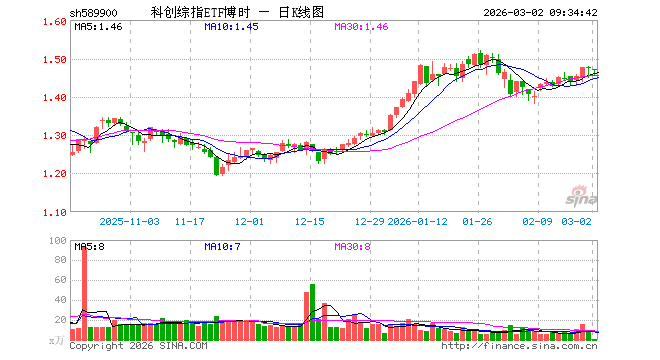 3月2日,科创综指ETF博时(589900)开盘跌0.41%,报1.470元。科创综指ETF博时(589900)重仓股方面,寒武纪开盘跌2.38%,海光信息跌2.31%,中芯国际跌1.84%,中微公司跌1.17%,金山办公跌2.05%,澜起科技跌2.76%,百利天恒跌1.52%,联影医疗跌1.68%,影石创新涨2.00%,拓荆科技跌3.08%。
