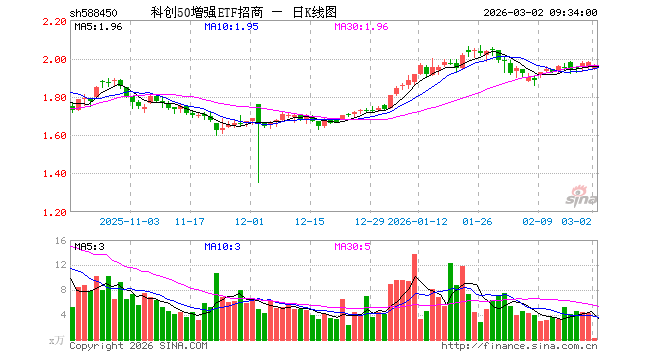 3月2日,科创50增强ETF招商(588450)开盘跌2.07%,报1.940元。科创50增强ETF招商(588450)重仓股方面,中芯国际开盘跌1.84%,海光信息跌2.31%,中微公司跌1.17%,澜起科技跌2.76%,寒武纪跌2.38%,金山办公跌2.05%,联影医疗跌1.68%,晶合集成跌2.87%,中控技术跌2.74%,佰维存储跌3.44%。