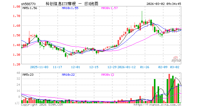 3月2日,科创信息ETF摩根(588770)开盘跌0.51%,报1.558元。科创信息ETF摩根(588770)重仓股方面,中芯国际开盘跌1.84%,海光信息跌2.31%,寒武纪跌2.38%,澜起科技跌2.76%,中微公司跌1.17%,金山办公跌2.05%,拓荆科技跌3.08%,芯原股份跌0.92%,华虹公司跌2.89%,沪硅产业跌2.16%。