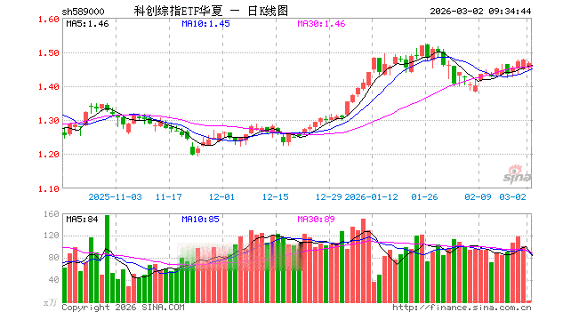 3月2日,科创综指ETF华夏(589000)开盘跌1.63%,报1.452元。科创综指ETF华夏(589000)重仓股方面,寒武纪开盘跌2.38%,海光信息跌2.31%,中芯国际跌1.84%,中微公司跌1.17%,金山办公跌2.05%,澜起科技跌2.76%,百利天恒跌1.52%,联影医疗跌1.68%,影石创新涨2.00%,拓荆科技跌3.08%。
