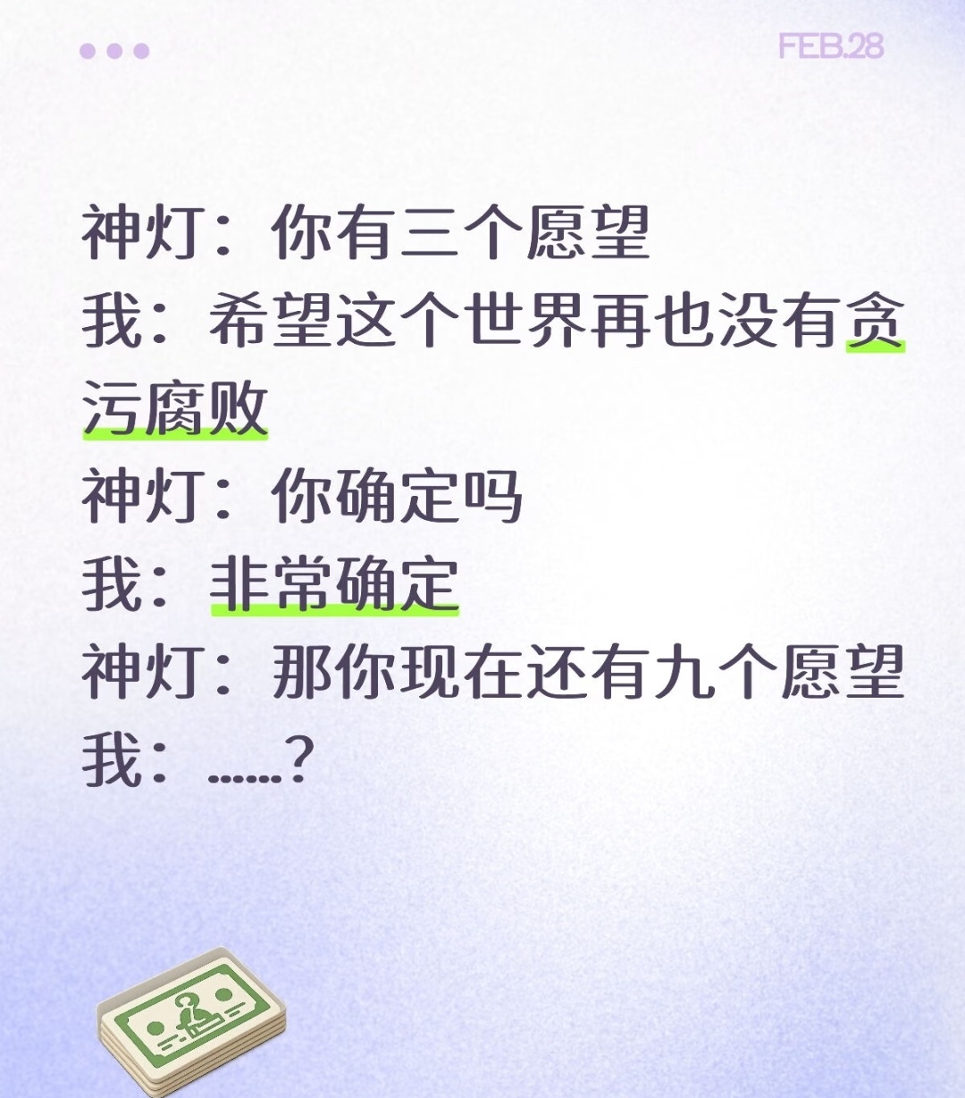 用户10xxx74 2 2026-03-02 16:17 民间许愿有个传统,愿望实现了的话要去还愿。。如果这世上真有神灵,那么人在许愿的时候,一定会失去什么,签了什么签约,大部分情况肯定是某种高利贷。。所以我从不许愿