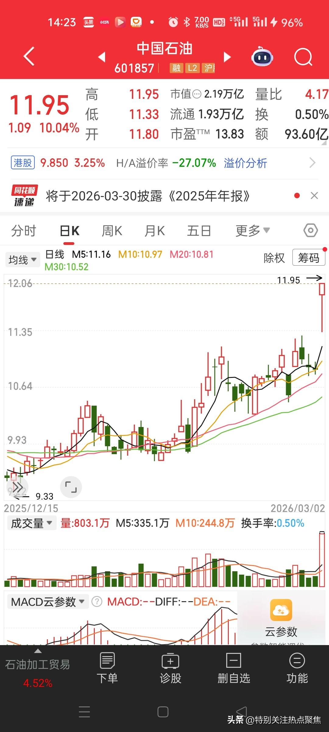 中国石油涨停!特朗普没有想到,他打伊朗把中国股市最有名熊股中国石油打涨停,熊🐻变牛🐮了。中国石油罕见涨停,带动上证指数翻红?特朗普即问什么情况?如果不是中国石油凭一己之力护盘,今天避险逃跑,大盘会跌成什么情况? 这场面确实戏剧性十足。特朗普本想通过打击伊朗掐断石油供应、制造恐慌,结果却意外引爆了国际油价,反而给中国石油送去了“大礼包”。这背后其实是一场典型的“避险逻辑”与“供需逻辑”的共振。 🛢️ 油价暴涨的直接推手 特朗普这次行动精准击中了全球能源市场的“七寸”——霍尔木兹海峡。这里是全球约20%海运原油的必经之路,一旦封锁,意味着全球五分之一的原油供应面临中断风险。这种恐慌情绪直接导致布伦特原油期货一度暴涨13%,创下近11年新高。中国石油作为国内最大的油气生产商,自然成为资金抢筹的“香饽饽”。 🐻 熊股变牛股的三大逻辑 1. 地缘政治溢价:美伊冲突推升了“风险溢价”,市场愿意为潜在的不确定性支付更高价格,这直接转化为中国石油的利润预期。 2. 业绩改善预期:油价上涨直接带动了全产业链的盈利修复。从上游的勘探开采,到中游的油服工程,再到下游的炼化销售,中国石油的业绩弹性被市场重新定价。 3. 避险资金抱团:在战争阴云下,资金天然会寻找“避风港”。中国石油作为高股息、低波动的“中特估”代表,成为避险资金的首选,大量资金涌入形成“抱团效应”。 🚨 护盘背后的“虚胖”与“实火” 你观察到的“护盘”现象非常精准,但需要拆解: * “虚”的一面:虹吸效应。中国石油这种巨无霸涨停,需要消耗海量资金。这导致其他板块(特别是科技、成长股)被“抽血”,所以你会看到“指数红,个股绿”的冰火两重天现象。 * “实”的一面:业绩支撑。这次上涨并非纯概念炒作,而是有实打实的业绩逻辑。如果中东局势持续紧张,油价维持高位,中国石油的利润将直接受益,这属于基本面驱动。 总结:特朗普这一拳,打出了全球油价的“黑天鹅”,也打出了A股“中特估”的春天。这波行情是避险情绪+业绩改善的双重共振,但需警惕权重股上涨对市场流动性的虹吸风险。 油气股上扬 美股石油股 特朗普炒股