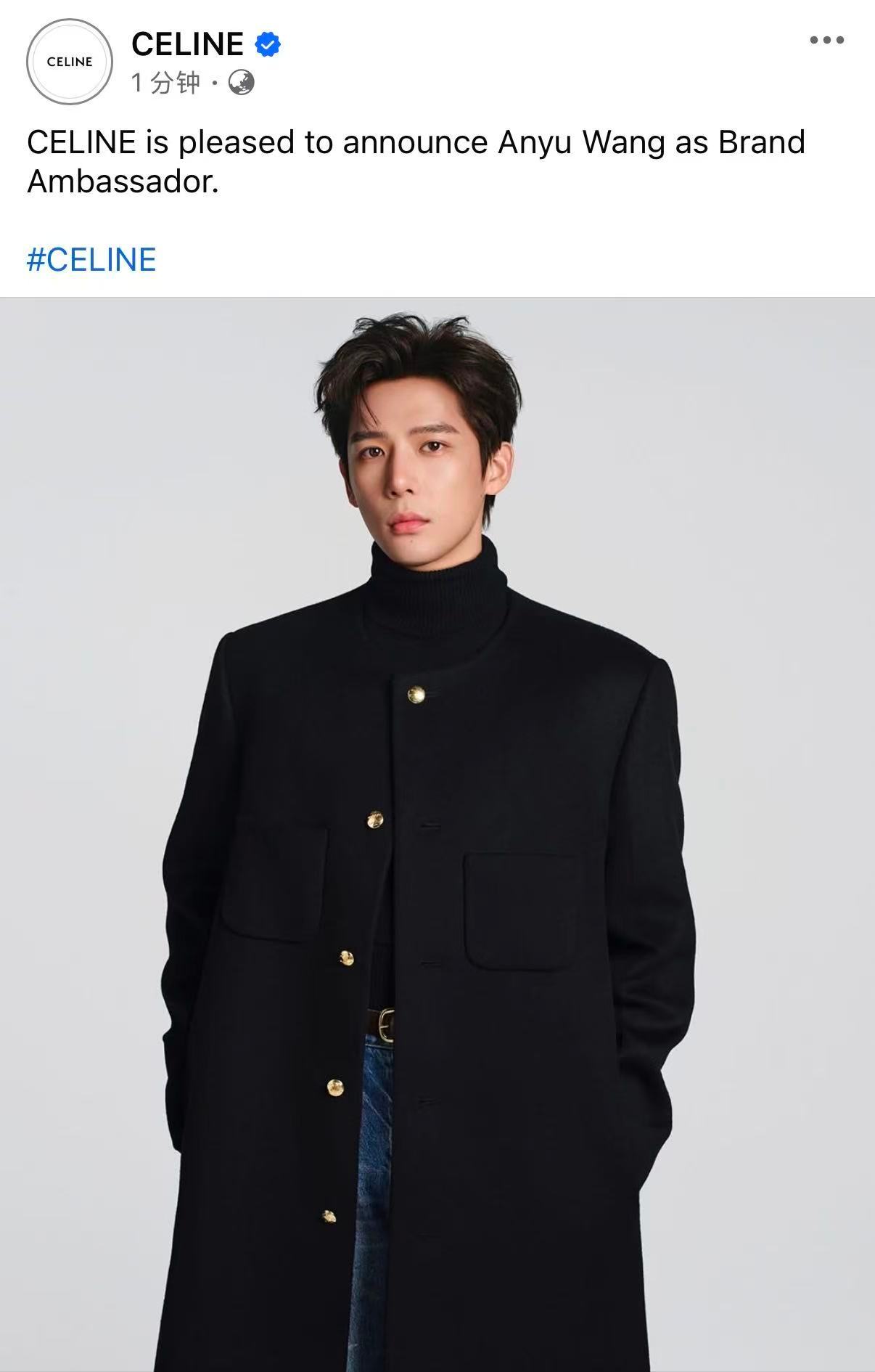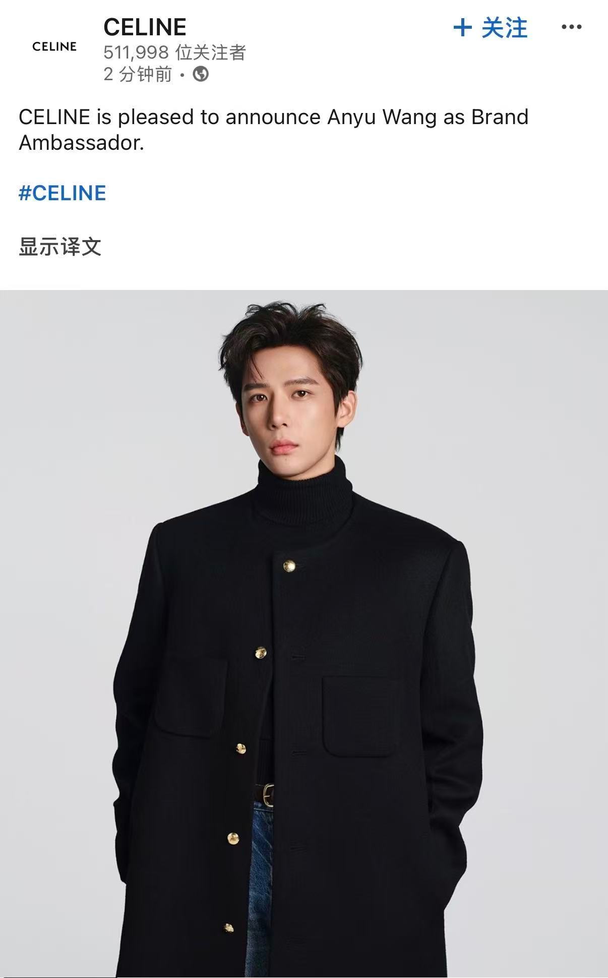 王安宇顶奢官宣待遇王安宇国内首位男大使的含金量 开年空降CELINE高title