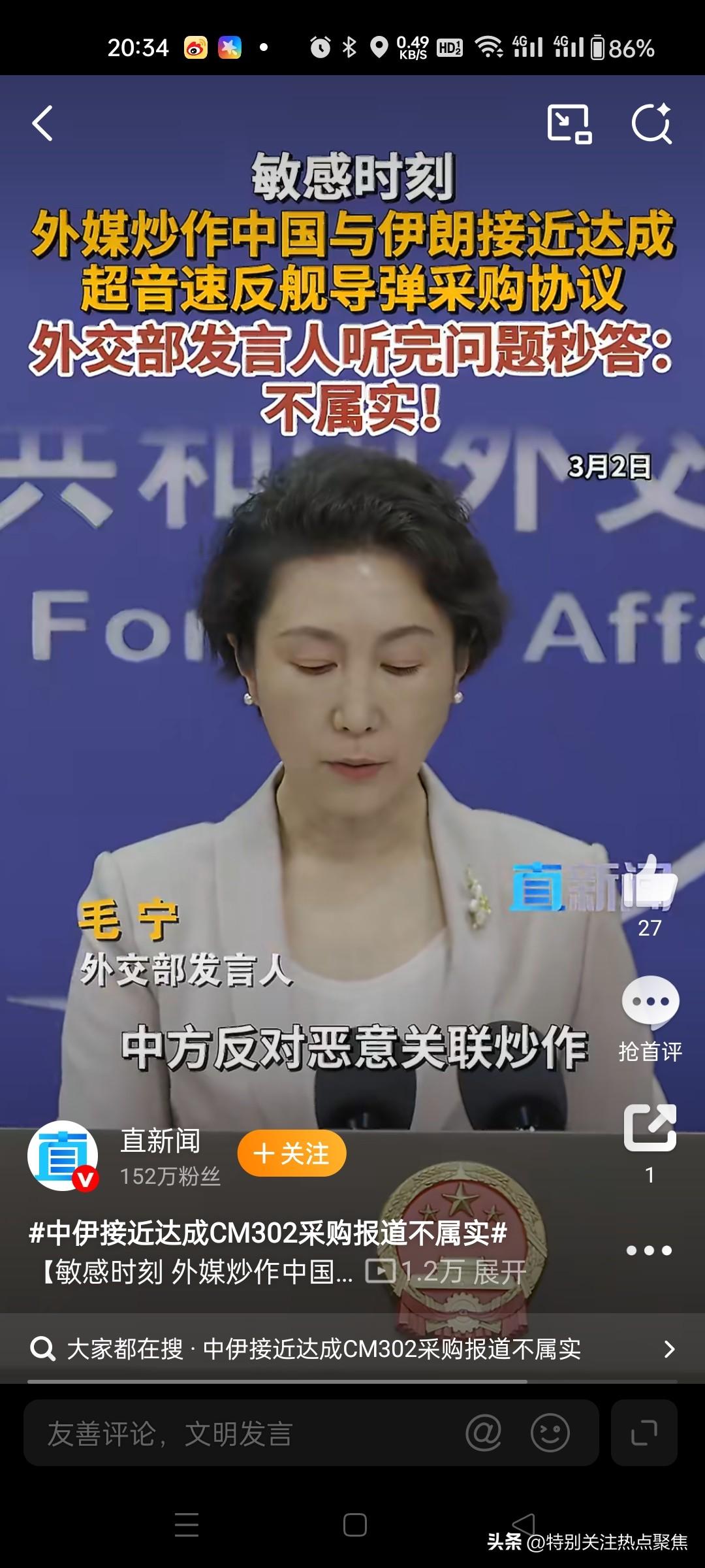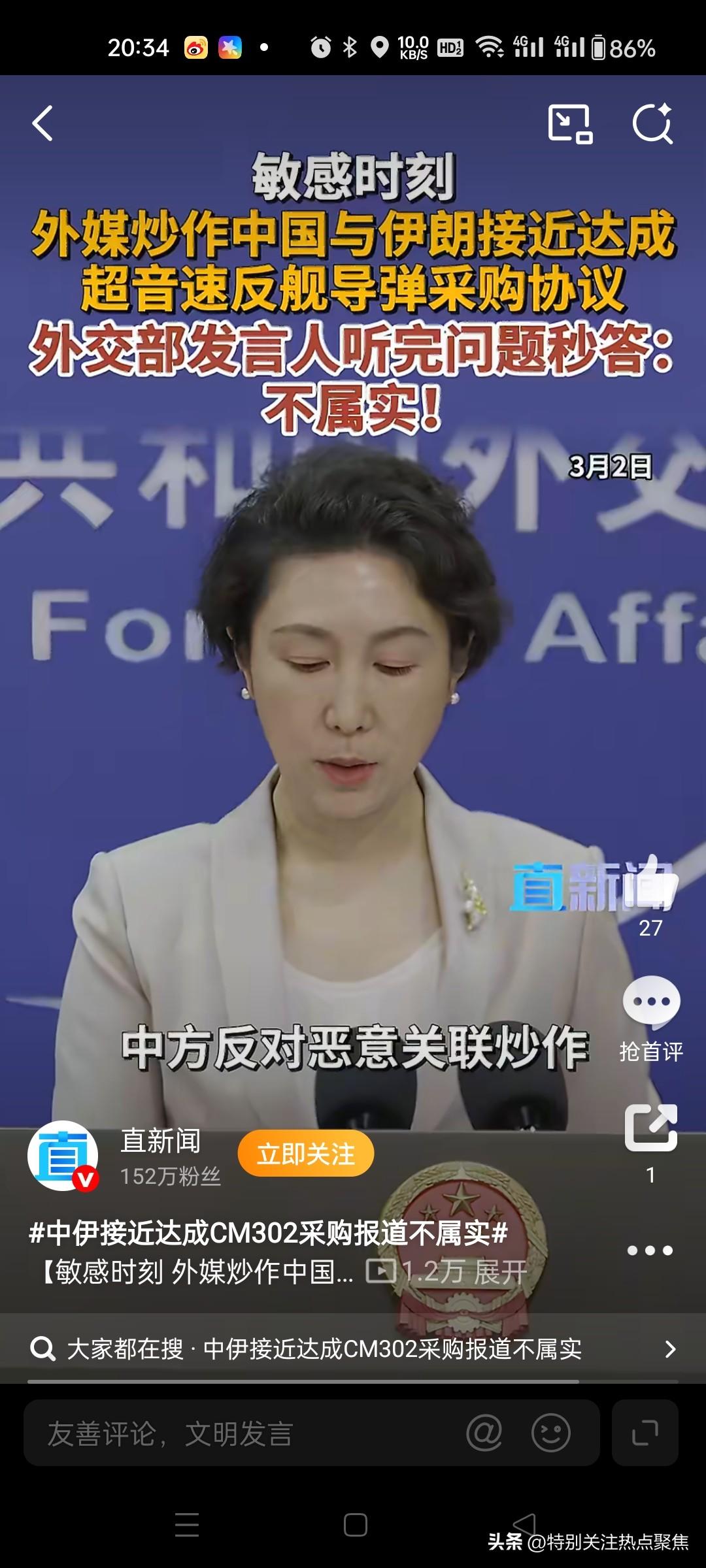 反对恶意关联炒作。总有人别有用心把重货拉扯进来,太坏了。中国不蹚浑水。中国向伊朗提供导弹?中方回应:不属实!反对恶意关联炒作。中国外交部的声音。