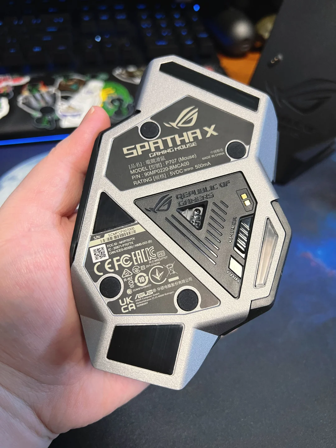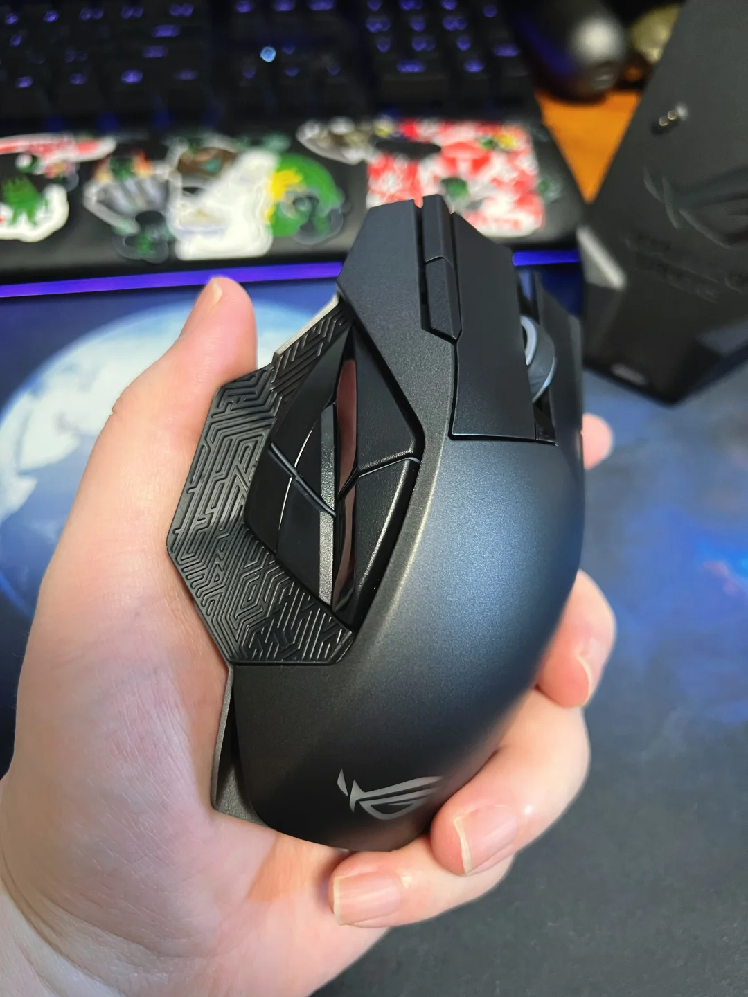 华硕ROG斯巴达X无线游戏鼠标图测,这款鼠标体型较大,感觉有个D杯[doge]