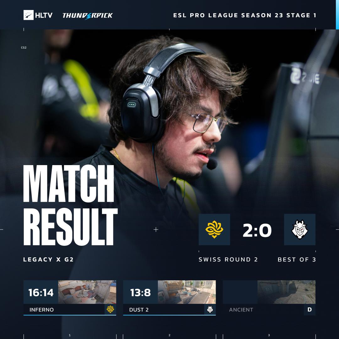 虎扑03月03日讯EPLS23第一阶段第二轮:Legacy对阵G2。