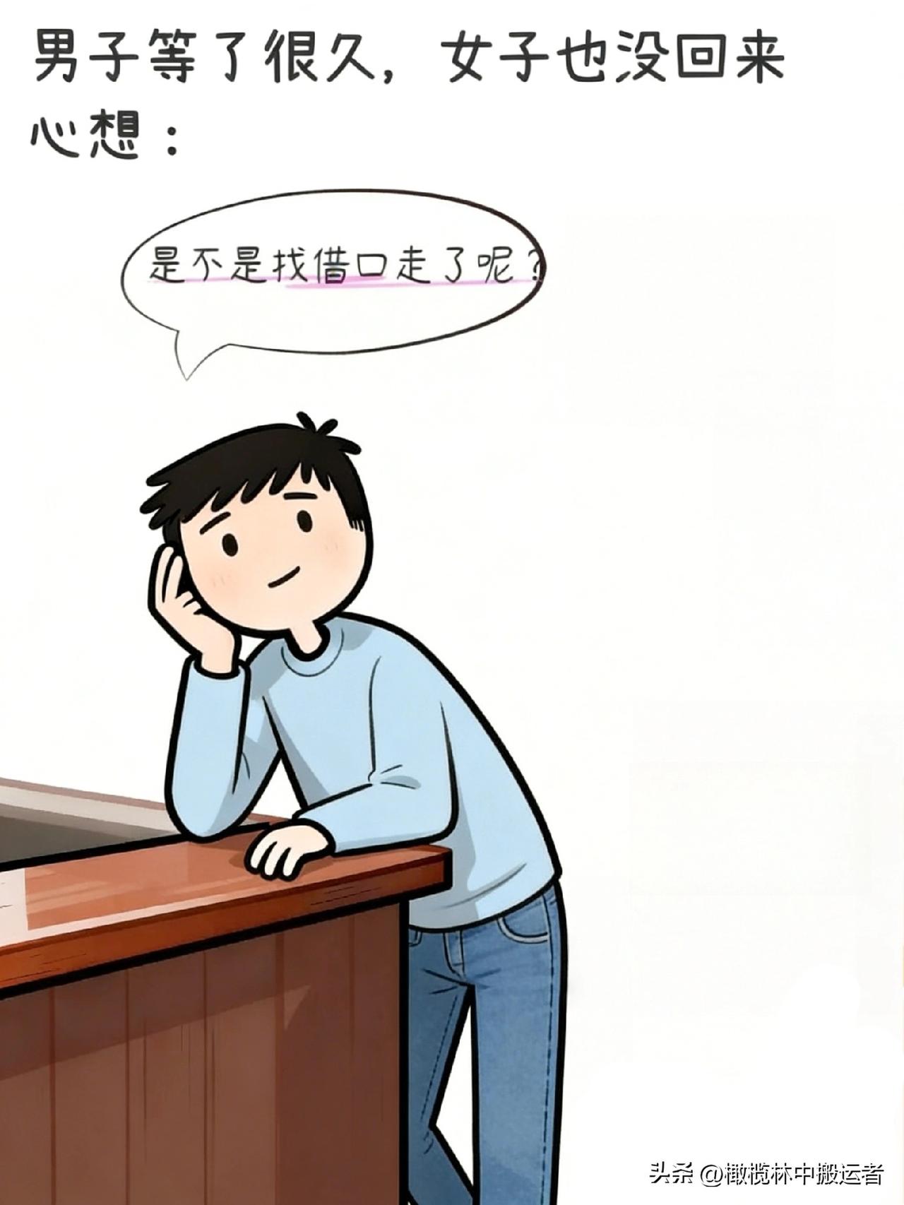 趣味漫画:两人相亲!女子去洗手间,男子等了很久不见女子回来,准备离开时遇到女同学