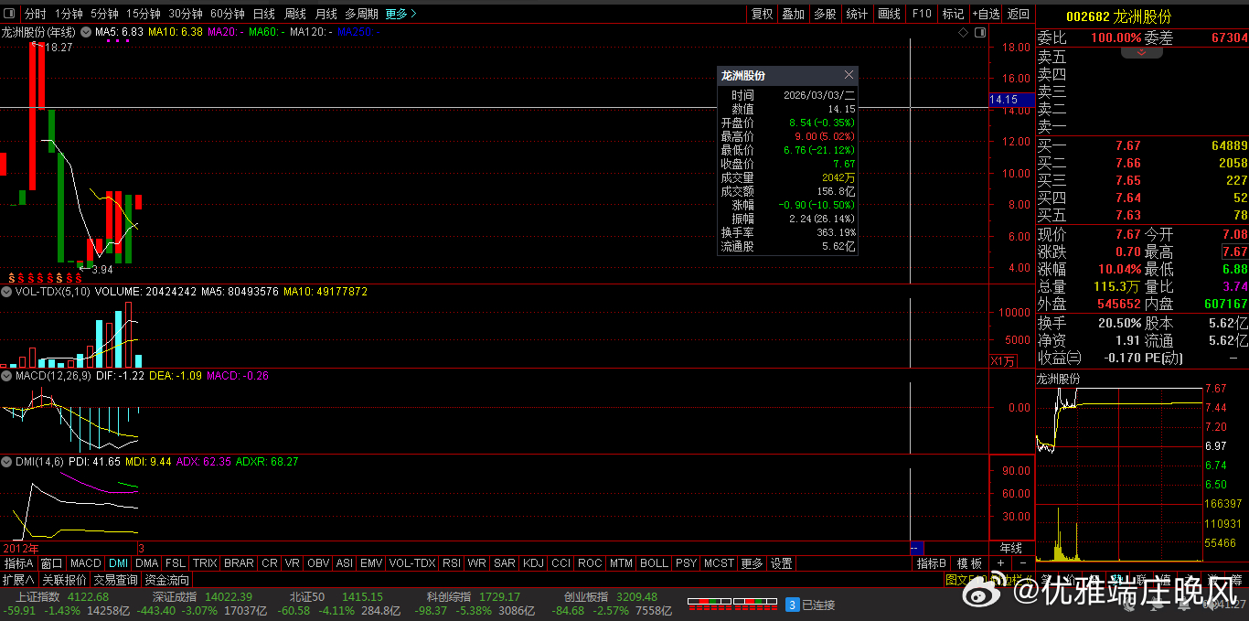 收盘价: 7.67 元。涨跌幅:10.04%。净流入: 3.06亿