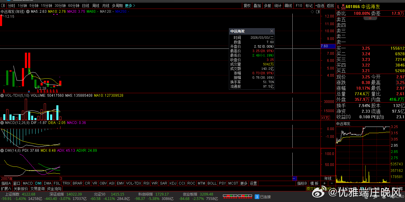 收盘价: 3.25元。涨跌幅:10.17%。净流入: 3.32亿