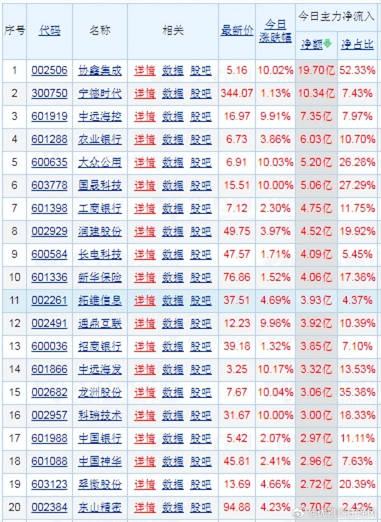 【财富晚茶】潜龙浮出水面:03.03主力资金:净流入前20股票