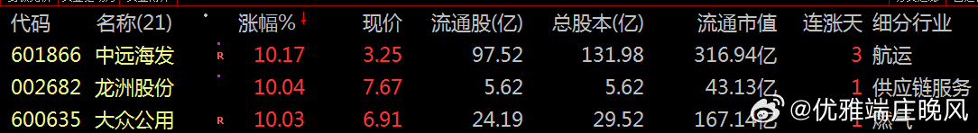 全球集装:箱航运第一梯队,自营船队运力超340万TEU,稳居全球前四,单箱成本低于行业15–18%。受益于跨太平洋航线运价回暖与“船+港”一体化网络,当日涨幅9.91%,主力净流入7.35亿元。