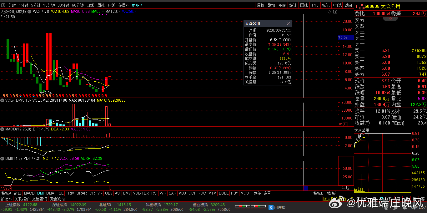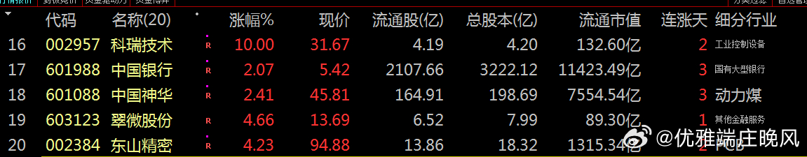 A股银行市值冠军,县域贷款余额超10万亿元,占境内贷款40.9%,股息率稳定,市净率突破1.06打破“破净”魔咒。当日涨幅3.86%,主力净流入6.03亿元,为资金避险首选。