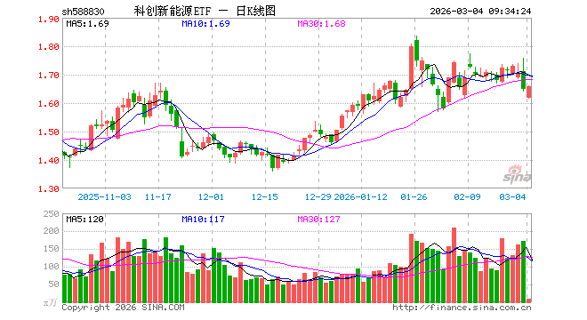 科创新能源ETF(588830)业绩比较基准为上证科创板新能源指数收益率,管理人为鹏华基金管理有限公司,基金经理为闫冬,成立(2024-07-31)以来回报为64.98%,近一个月回报为-1.90%。