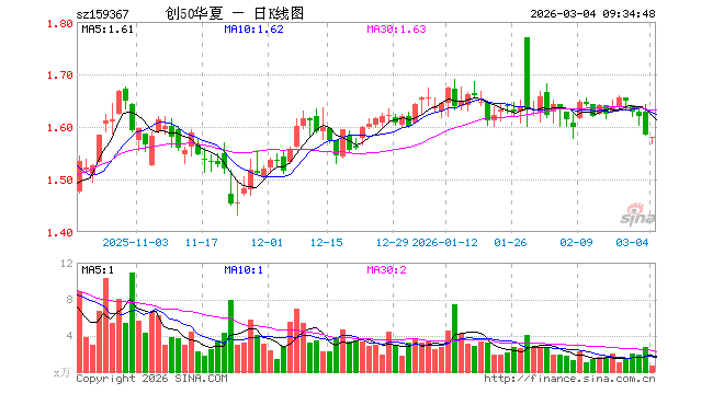 3月4日,创业板50ETF华夏(159367)开盘跌0.38%,报1.579元。创业板50ETF华夏(159367)重仓股方面,宁德时代开盘跌0.86%,中际旭创跌1.73%,新易盛跌1.20%,东方财富跌0.97%,阳光电源跌1.75%,胜宏科技跌1.37%,汇川技术跌1.13%,迈瑞医疗跌0.36%,天孚通信跌1.87%,亿纬锂能跌1.58%。