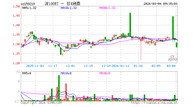 3月4日,深证100ETF融通(159219)开盘跌0.91%,报1.307元。深证100ETF融通(159219)重仓股方面,宁德时代开盘跌0.86%,中际旭创跌1.73%,新易盛跌1.20%,美的集团跌0.73%,东方财富跌0.97%,立讯精密跌1.52%,阳光电源跌1.75%,比亚迪跌0.01%,五粮液跌0.54%,北方华创跌0.66%。
