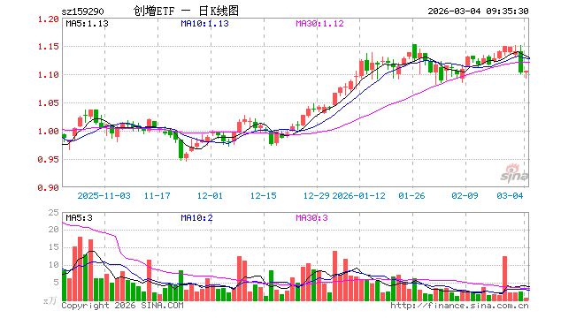 3月4日,创业板综指增强ETF东财(159290)开盘涨0.09%,报1.103元。创业板综指增强ETF东财(159290)重仓股方面,宁德时代开盘跌0.86%,中际旭创跌1.73%,阳光电源跌1.75%,迈瑞医疗跌0.36%,新易盛跌1.20%,信维通信涨0.00%,同花顺跌1.42%,超捷股份跌0.63%,三环集团跌1.22%,润泽科技跌3.48%。