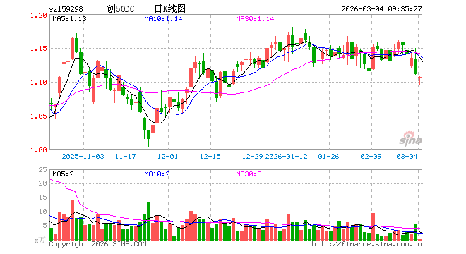 3月4日,创业板50ETF大成(159298)开盘跌0.45%,报1.106元。创业板50ETF大成(159298)重仓股方面,宁德时代开盘跌0.86%,中际旭创跌1.73%,新易盛跌1.20%,东方财富跌0.97%,阳光电源跌1.75%,胜宏科技跌1.37%,汇川技术跌1.13%,迈瑞医疗跌0.36%,天孚通信跌1.87%,亿纬锂能跌1.58%。