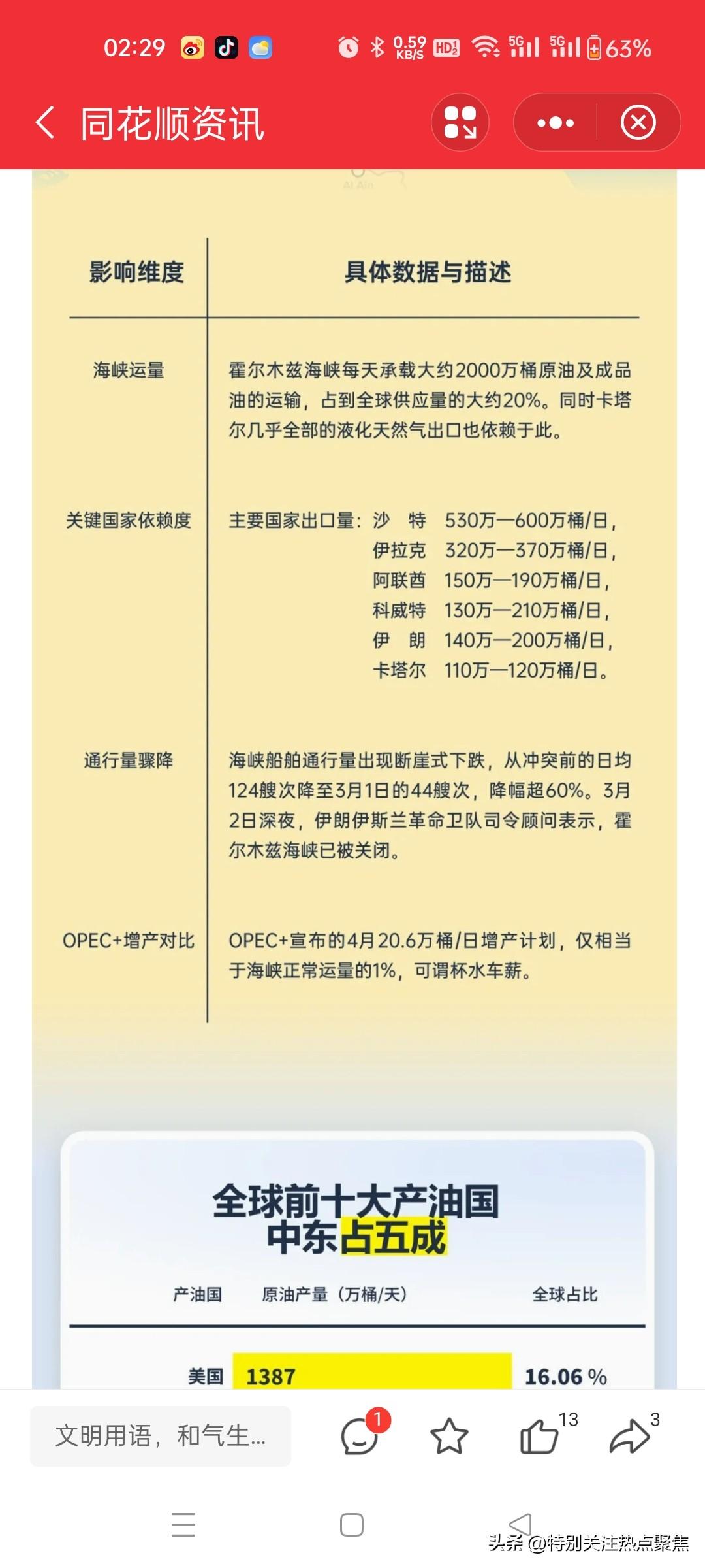 霍尔木兹海峡封闭影响石油运输冲击中国能源供应。 霍尔木兹海峡是亚洲国家的“能源生命线”,一旦关闭,日本、韩国、印度将首当其冲,面临“断供”风险。中国虽然依赖度相对较低,但绝对进口量巨大,冲击同样不容小觑。 🛢️ 亚洲“四巨头”依赖度排名 国家 霍尔木兹进口占比 日均进口量 风险等级 日本 约 60%-95% 约 150 万桶 ⭐⭐⭐⭐⭐ 韩国 约 63%-70% 约 170 万桶 ⭐⭐⭐⭐⭐ 印度 约 40%-50% 约 190 万桶 ⭐⭐⭐⭐ 中国 约 40%-45% 约 480 万桶 ⭐⭐⭐ 📉 各国具体风险分析 * 日本 & 韩国:最脆弱两国本土资源极度匮乏,90%以上的原油依赖进口,且主要来自中东。一旦海峡关闭,两国庞大的石化和制造业将面临“无米下锅”的窘境,经济可能陷入衰退。 * 印度:财政压力山大印度是新兴的汽车制造和出口中心,对原油需求旺盛。虽然依赖度略低,但油价每上涨1美元,印度的进口账单就要多付20亿美元。海峡关闭带来的油价飙升将直接冲击其财政和民生。 * 中国:绝对量大,缓冲期长中国是霍尔木兹海峡原油的最大买家,日均进口量接近500万桶。虽然依赖度(约40%)低于日韩,但绝对缺口最大。好在国家战略储备充足(约180天),短期内能有效缓冲冲击。 💡 自救方案 * 释放储备:中日韩三国均拥有庞大的战略石油储备(中国180天、日本254天、韩国90天),短期内可填补缺口。 * 绕行好望角:油轮可绕行非洲好望角,但航程增加40%,运输时间延长15-30天,成本激增250%以上。