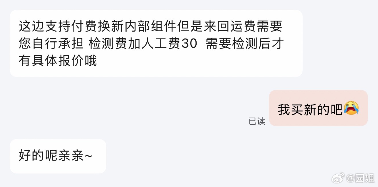笑死,这条没有吐槽意思哈,本来我买的这个产品已经过保了,就是感觉有意思,之前36买的小浪饮水机抽水泵,用了快四年坏了,我本来想去问问是不是还在保,他们说保一年,那就没办法了,不过他说可以维修,运费自付+30人工费,我看了一下新的价格,我还是买一个吧