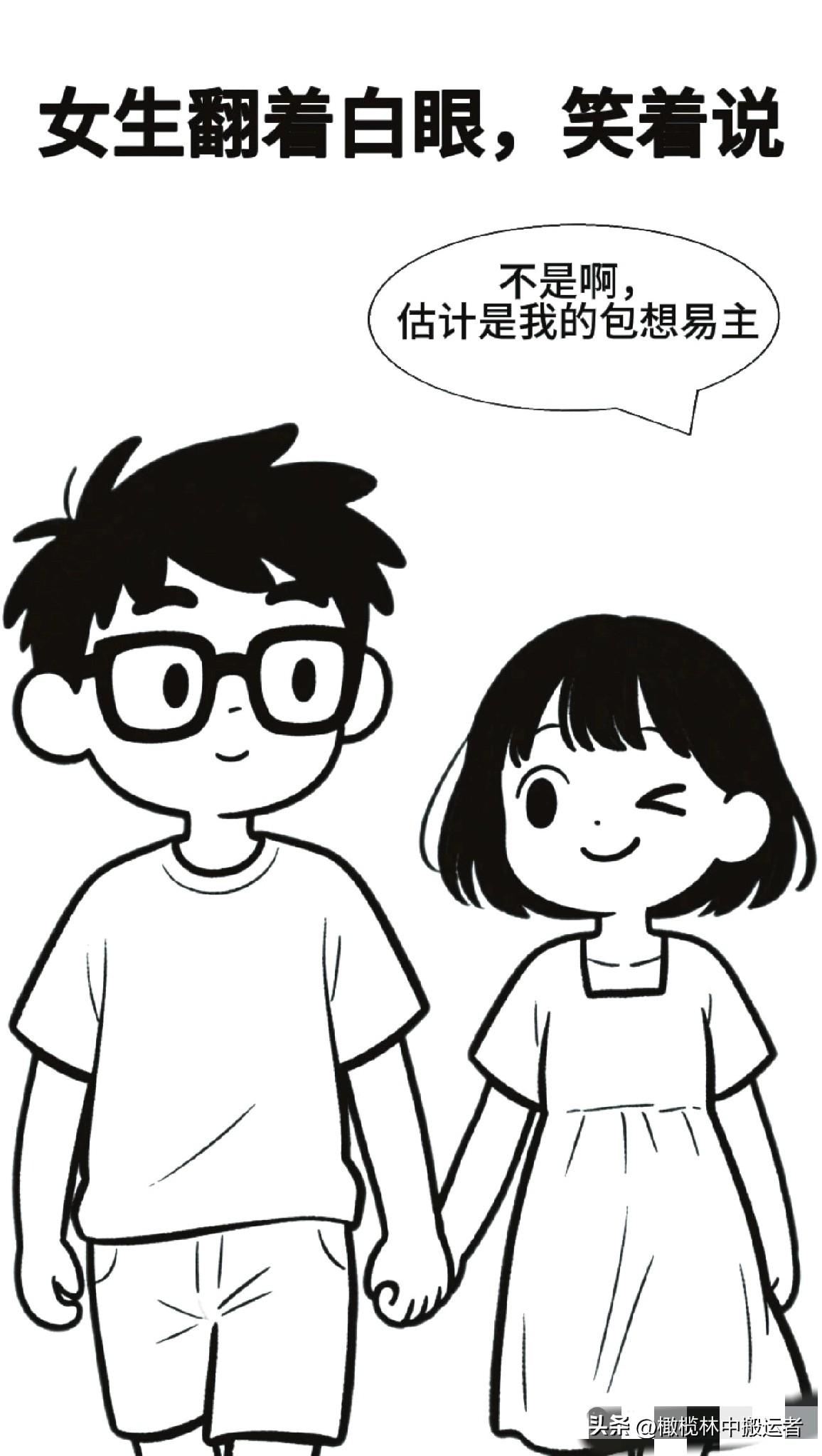 趣味漫画:一男女逛公园,女:我想买个新包,男:你上次买的呢?女:丢了,男:你是不是藏了包来骗我钱?女:不是啊,估计是我的包想易主