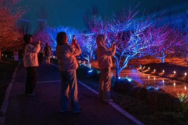 此外,即日起至3月15日梅花节期间,园区实行“一票畅玩”模式,日间购票入园的游客可免费畅享夜游光影秀,夜场特惠票同步推出。名字带“梅”或生肖属马的游客,还可享受免票或优惠福利。