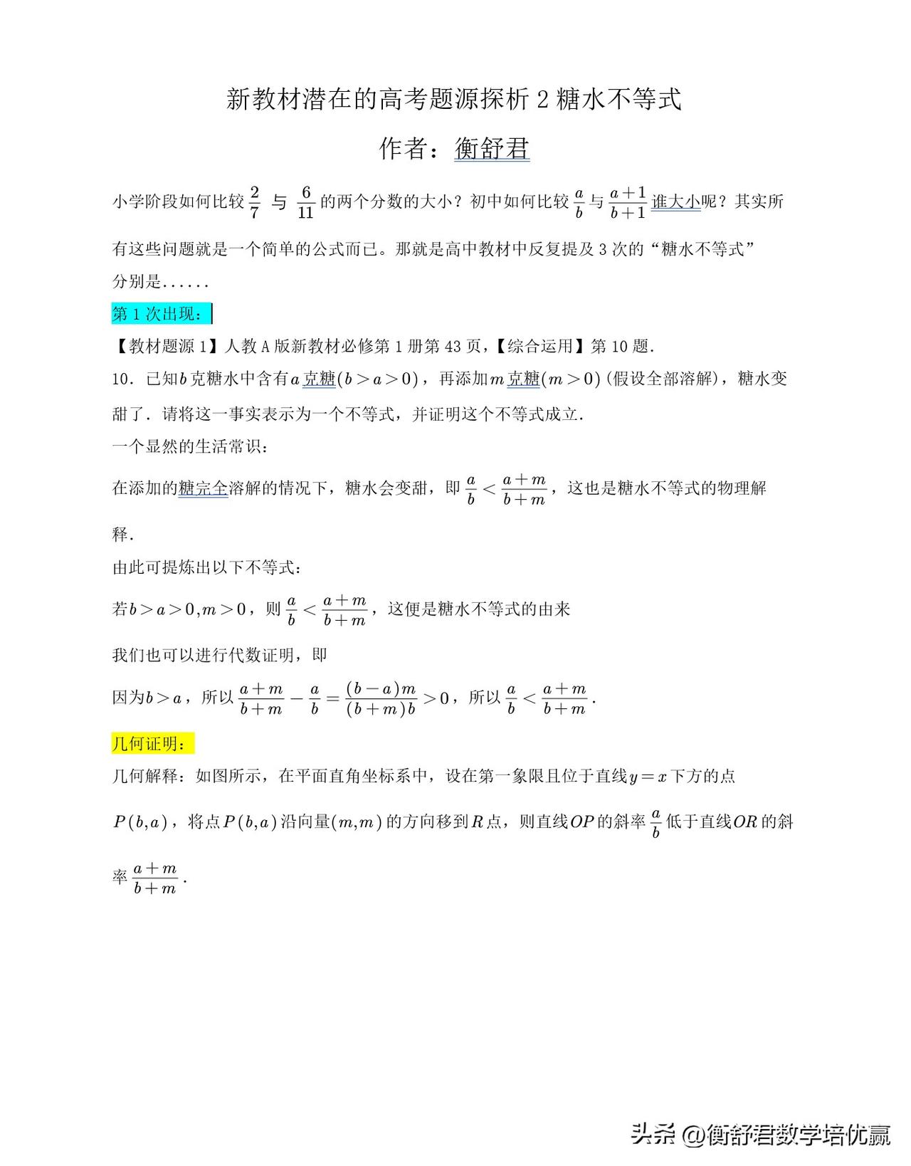 针对葛军老师说五套高考数学信心跃升卷第一套第4题做了一题多题变式,同时加入糖水不等式的拓展!