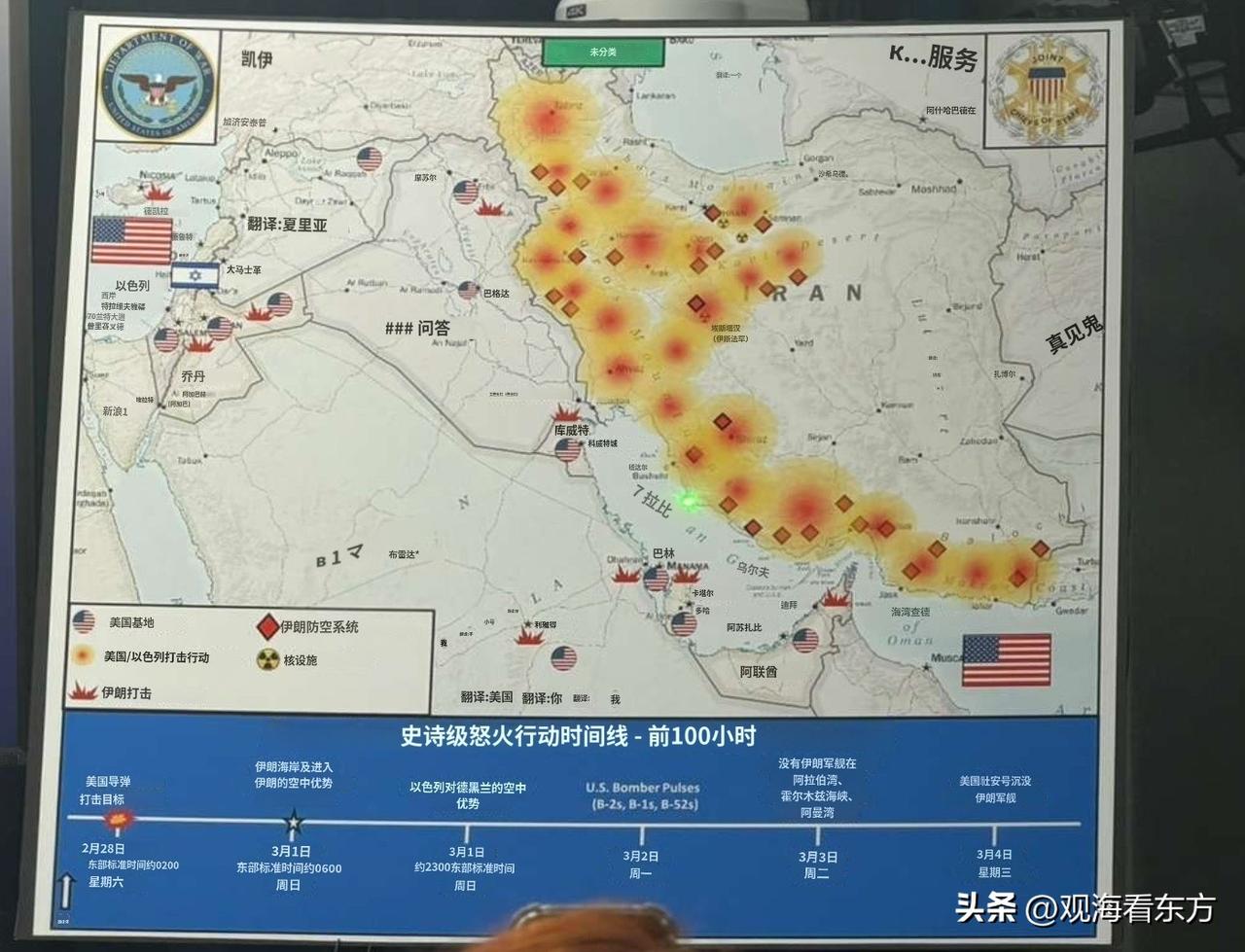 美国列出美以联盟和伊朗双方相互打击的时间线