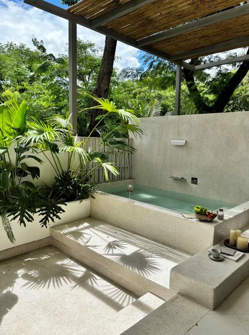 阳台里独立的温泉‼️保证了泡汤♨️的私密性,还是含氡温泉水💦泡完整个人都变得滑滑的,好舒适解压~