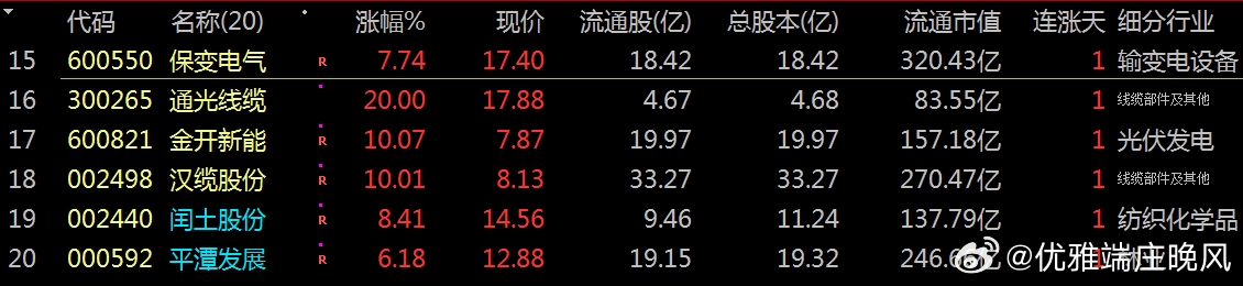 收盘价: 17.88 元。涨跌幅:20.00%。净流入: 3.60亿