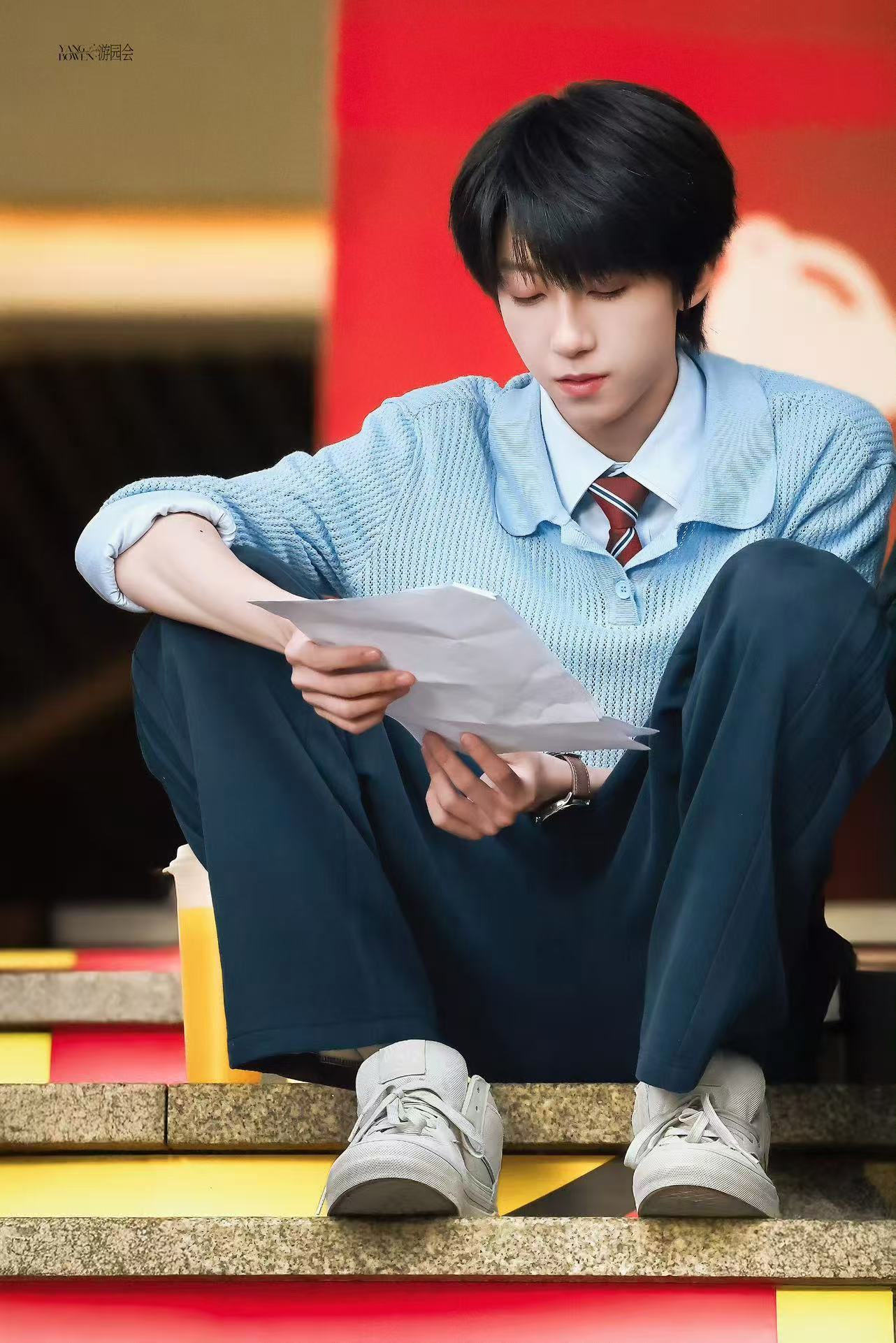 杨博文叠穿张函瑞张桂源杨博文一起上班张函瑞张桂源杨博文一起上班,杨博文叠穿,白衬衫领带叠穿蓝色针织衫,这个博文已经有了微微轻熟感,咱就说就怕年下会穿又会going啊!