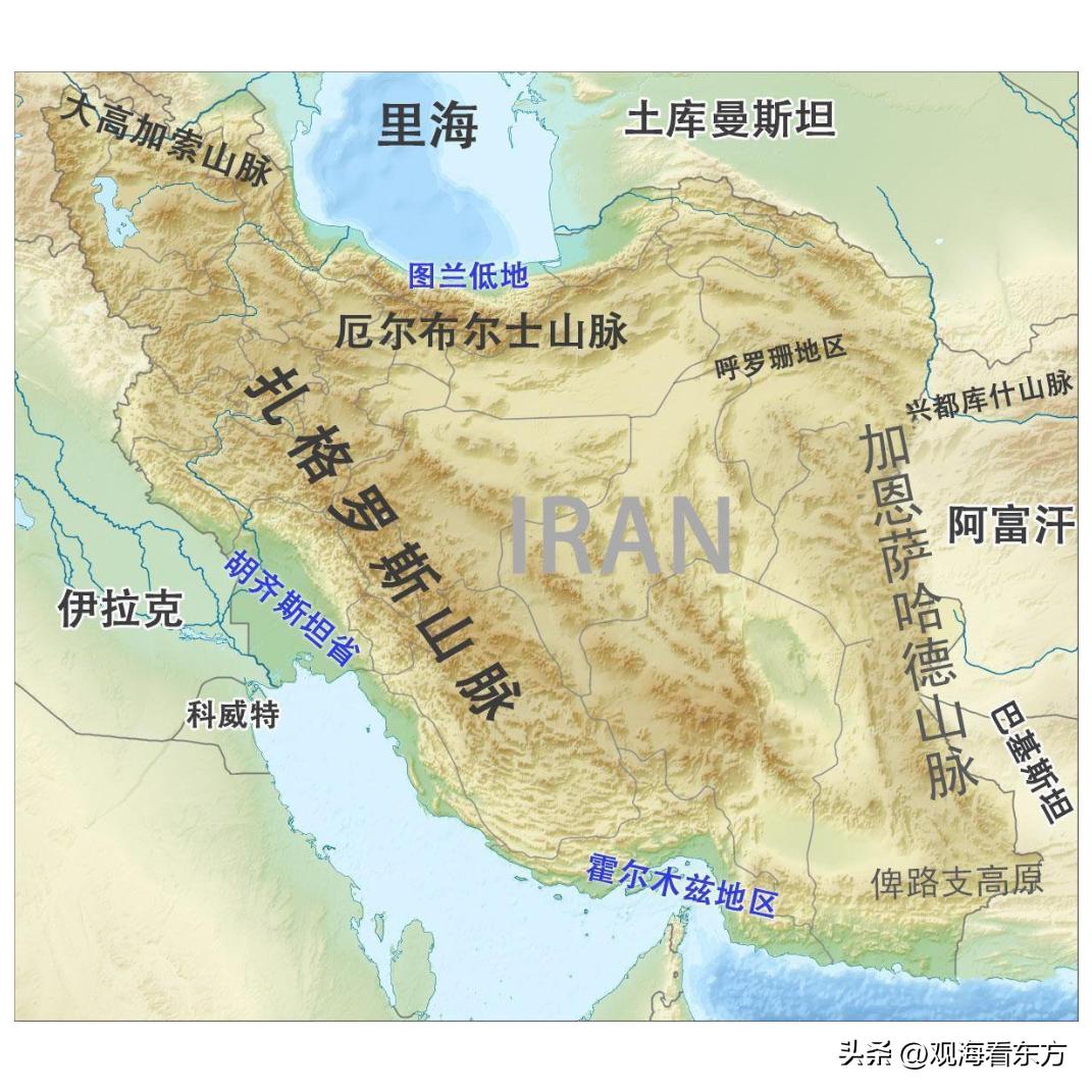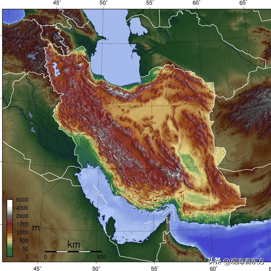 【伊朗地形介绍:四周高、中间低|天然的屏障】 看下图伊朗的地形 简直是四周高、中间低的巨型封闭高原 地形以伊朗高原为主,占国土超 60%,平均海拔 1200 米。外围被高大山脉死死围住,中间是内陆盆地和荒漠,属于典型封闭地形,几乎没有河流能直通大洋。 📍西部・扎格罗斯山脉绵延 1600 公里,宽 200 公里,既是天然屏障,也是伊朗重要的农牧区和油气带。 📍北部・厄尔布尔士山脉贴着里海南岸延伸 640 公里,挡住水汽,造就了狭长又肥沃的绿洲地带。 📍中部・高原荒漠被两大山脉夹在中间,极度干旱,盐漠、戈壁广布,人烟稀少。 也正因如此,伊朗90% 以上的人口,全都挤在边缘山地和沿海平原,内陆荒漠基本是无人区。