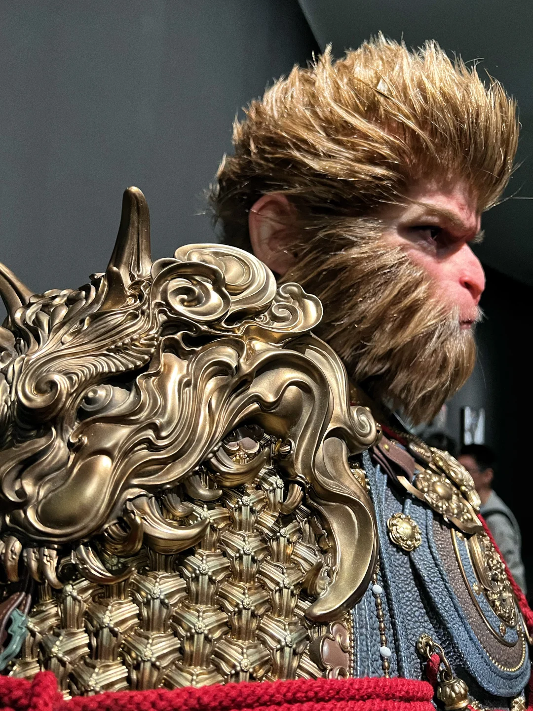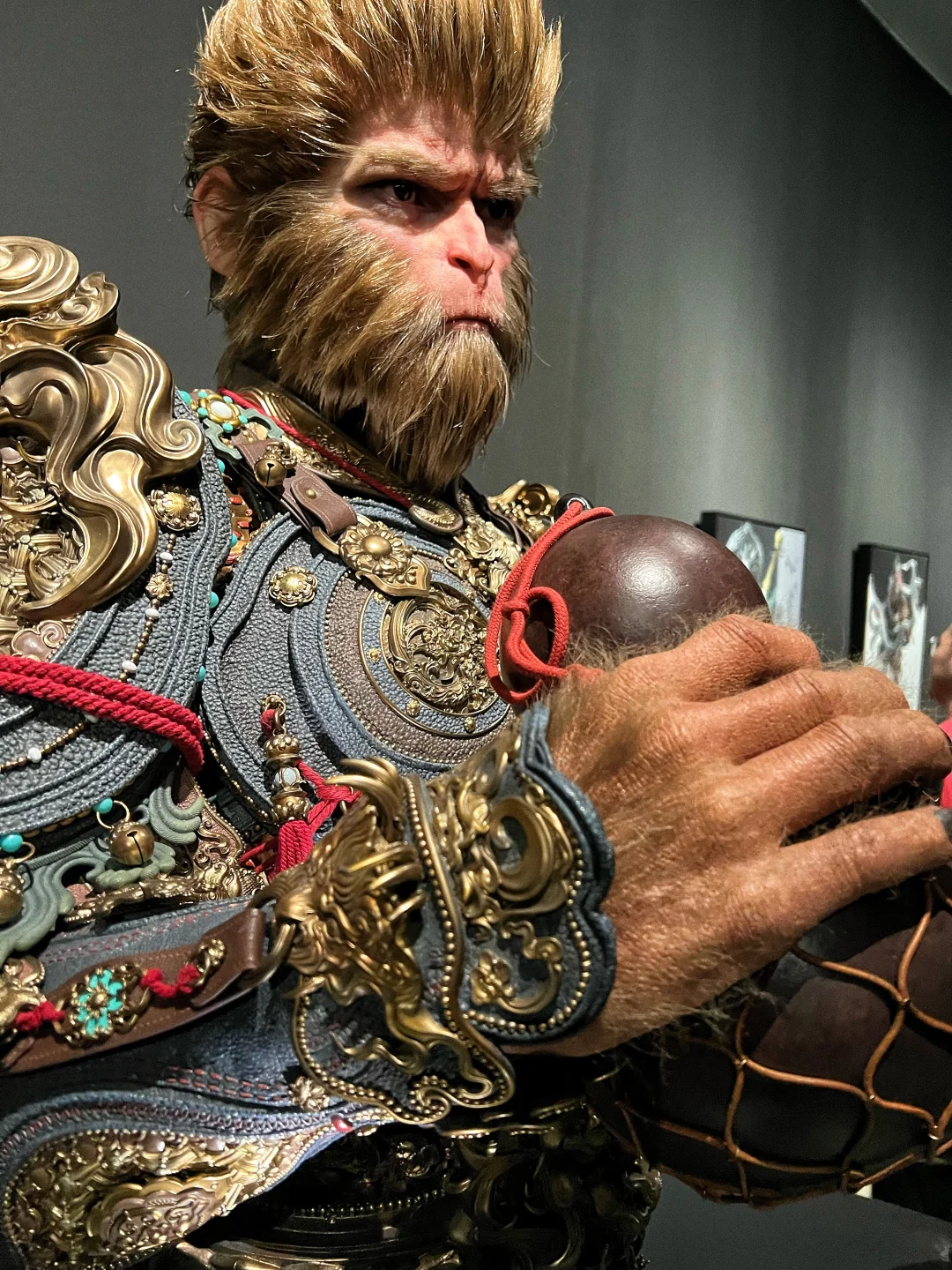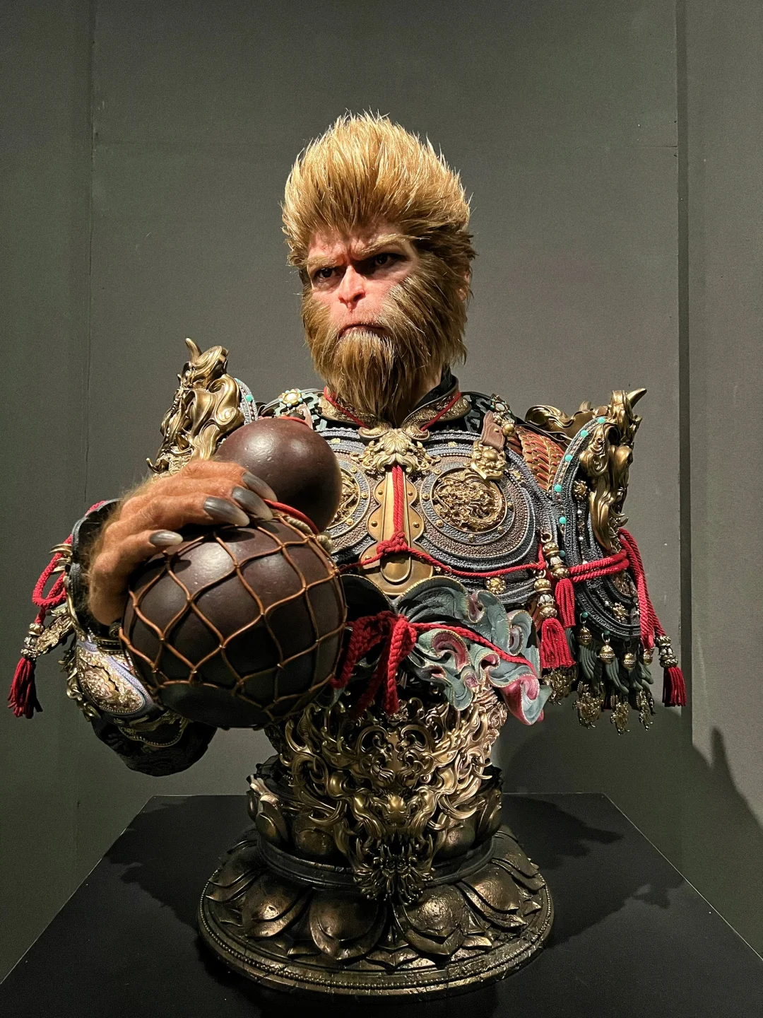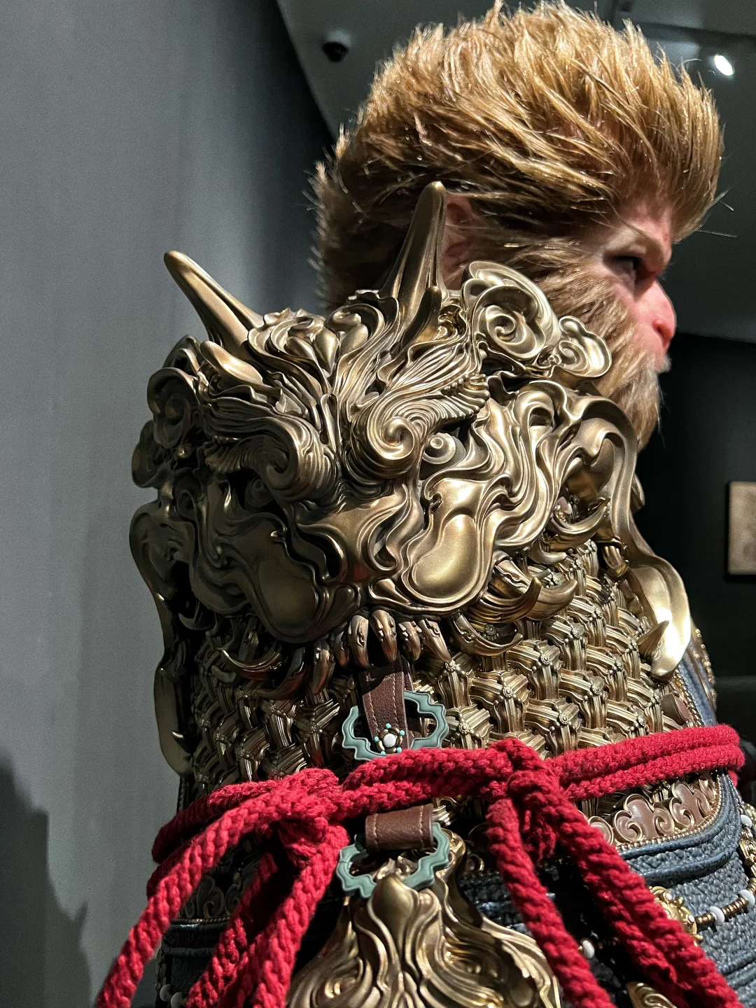 【黑神话悟空 天命人 1:1半身立像 细节图】🐒 之前发售的时候,在网上看图片已经很震撼了,没想到看到实物后更震撼,网上的图都模糊不清,要么是滤镜太厚,要么是简单几张,今天面对面一睹为快后,直拍大腿,没看到实物感觉三万多贵了,看到实物以后感觉是真的卖便宜了,这要是给那些手办大厂,绝对要十万起步!当初应该咬咬牙拿下的!今天拍了一些细节,但因为展馆的灯光比较暗,不是很明亮,但尽可能的已经很清晰了,诸位感受一下!