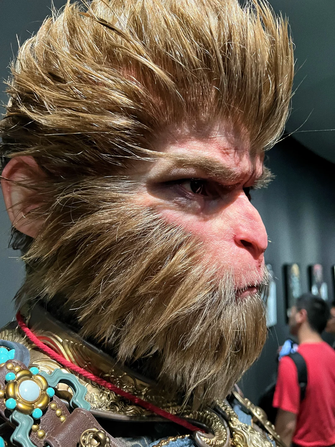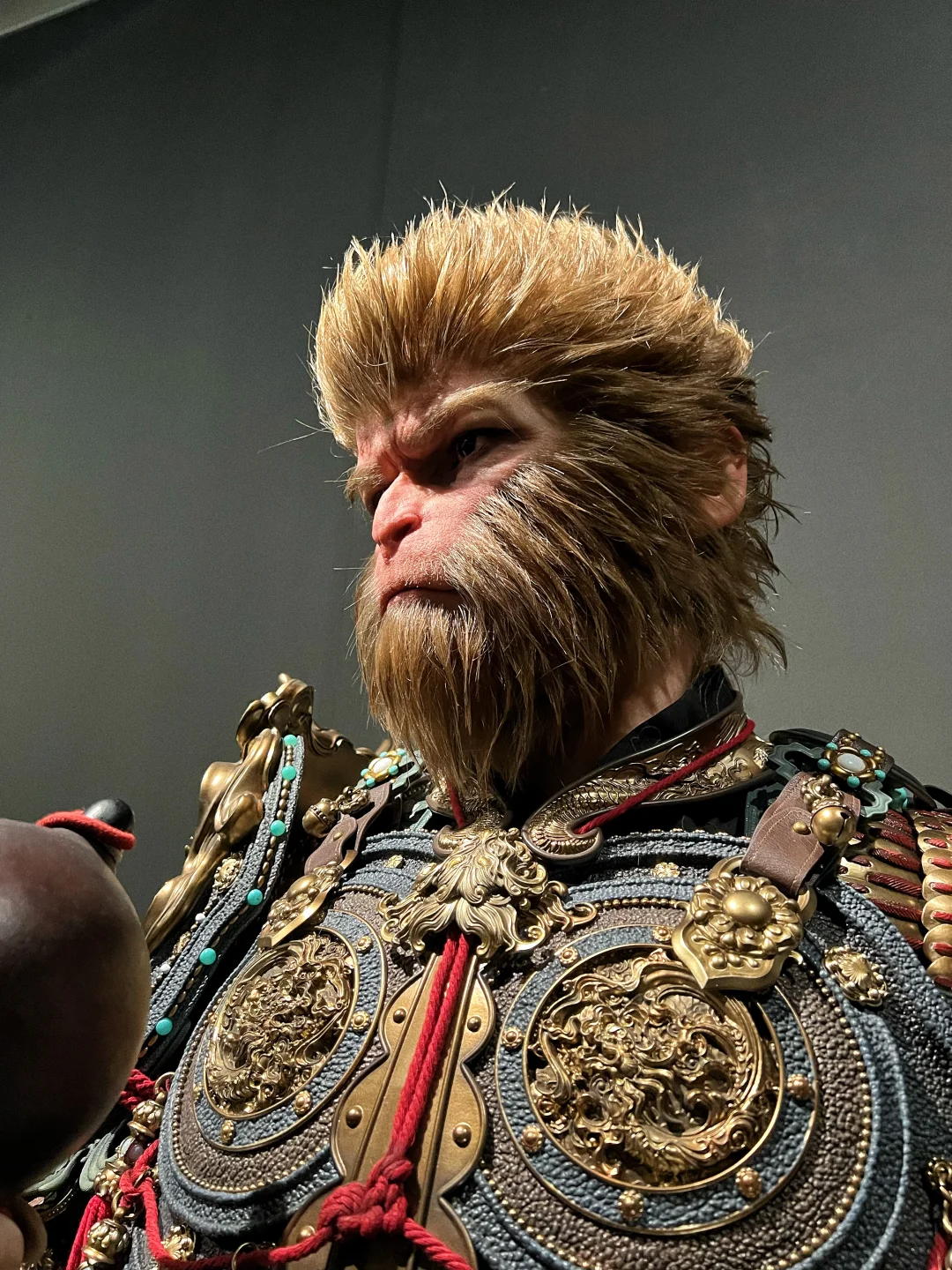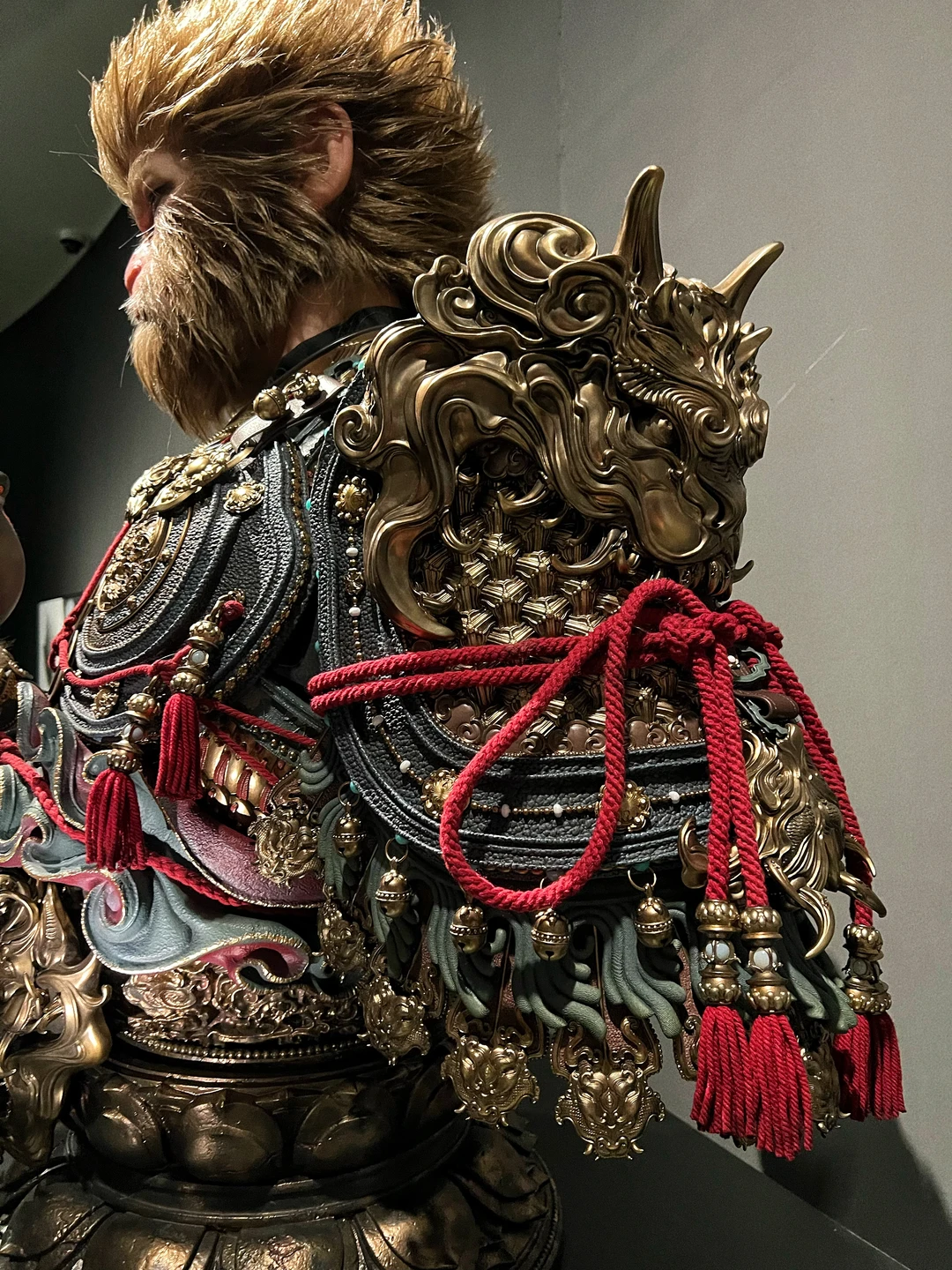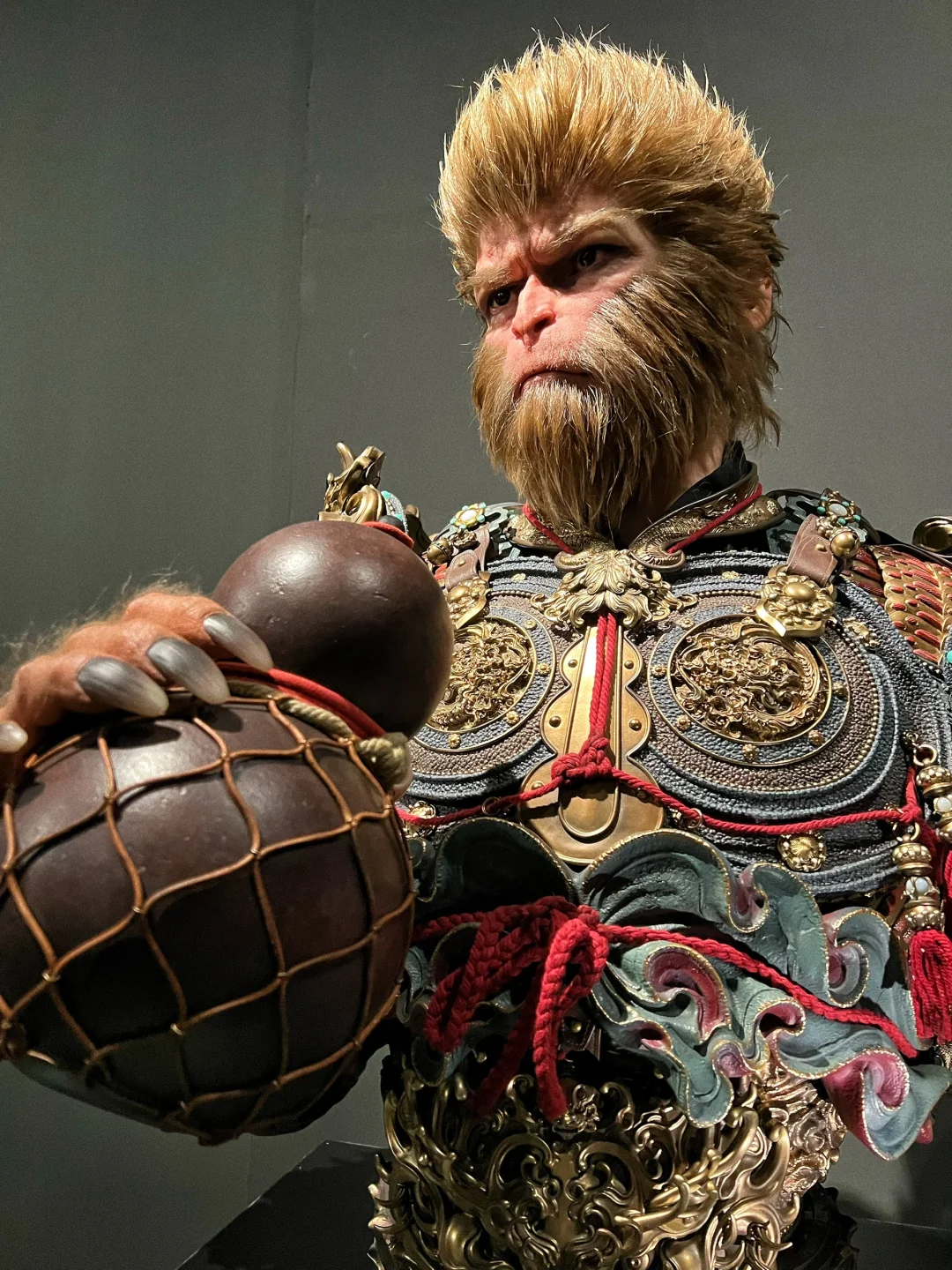 【黑神话悟空 天命人 1:1半身立像 细节图】🐒 之前发售的时候,在网上看图片已经很震撼了,没想到看到实物后更震撼,网上的图都模糊不清,要么是滤镜太厚,要么是简单几张,今天面对面一睹为快后,直拍大腿,没看到实物感觉三万多贵了,看到实物以后感觉是真的卖便宜了,这要是给那些手办大厂,绝对要十万起步!当初应该咬咬牙拿下的!今天拍了一些细节,但因为展馆的灯光比较暗,不是很明亮,但尽可能的已经很清晰了,诸位感受一下!