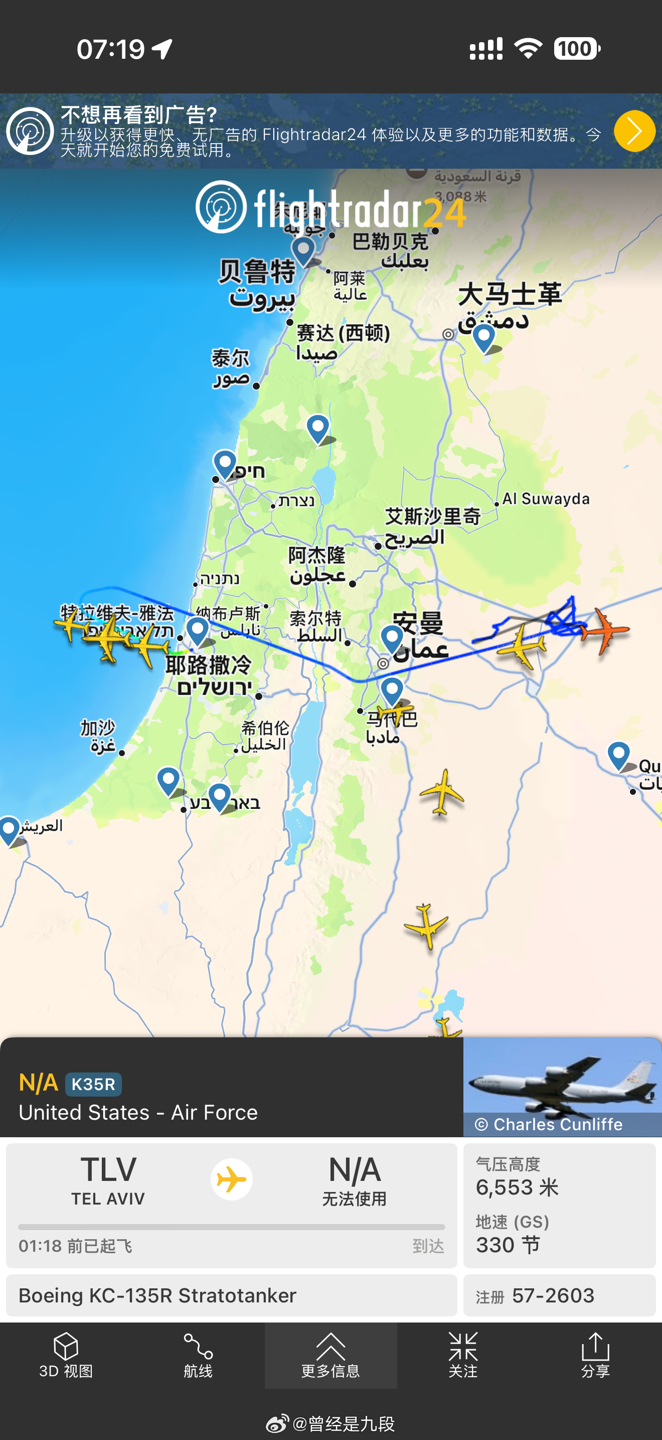 伊朗导弹袭击以色列最大机场 此时此刻特拉维夫本古里安国际机场目前进出港航班状况,民航起降正常,同时依然有大量KC135与KC46不间断的起飞降落。