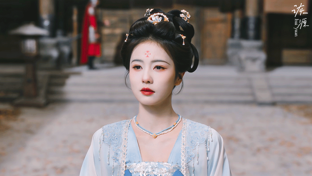 白鹿 《唐宫奇案》李佩仪 / 动图▷EP27-12(3)盘发+蓝衣(蓝白)+花钿