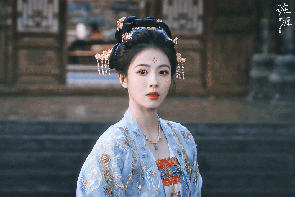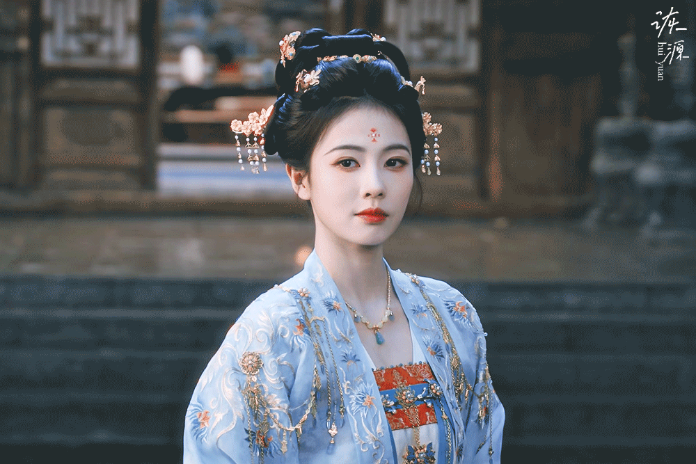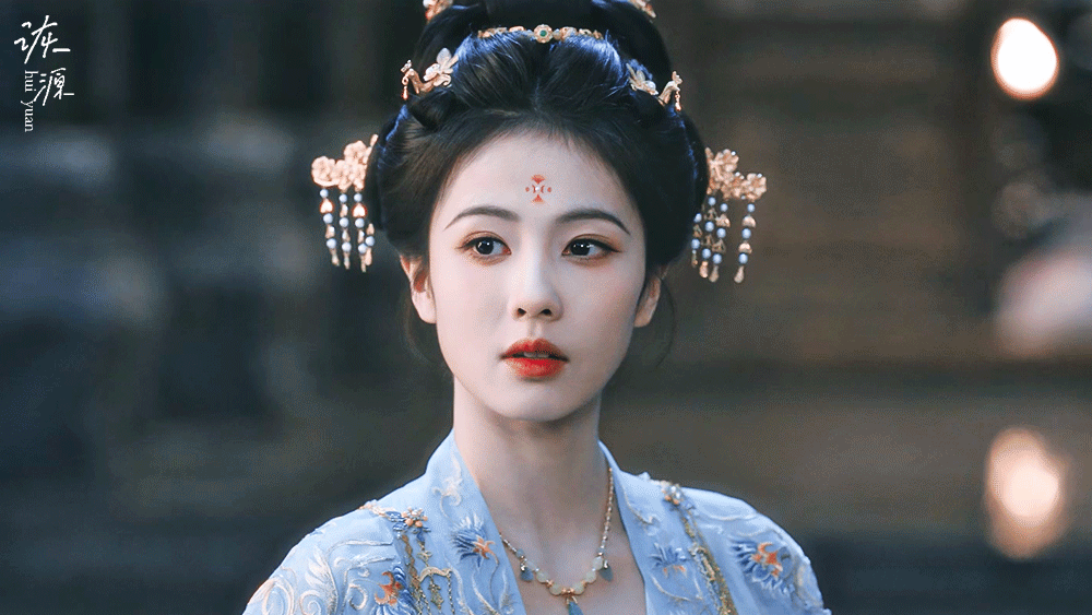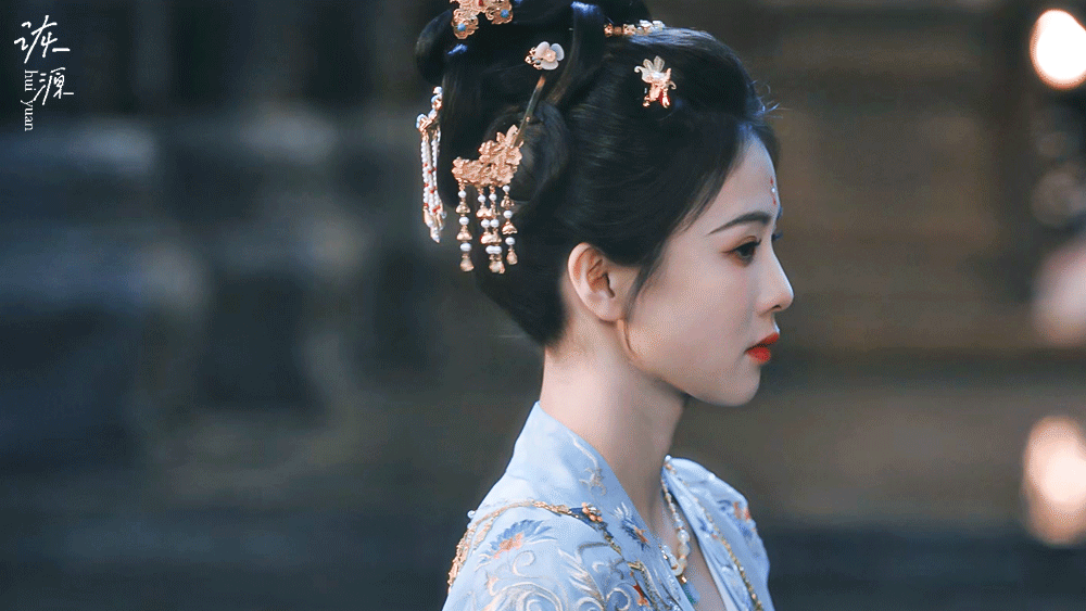 白鹿 《唐宫奇案》李佩仪 / 动图▷EP28-09 盘发+蓝衣(蓝橙)+花钿+珍