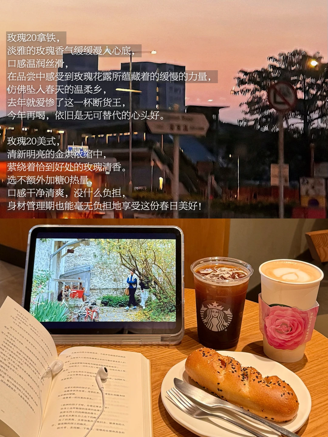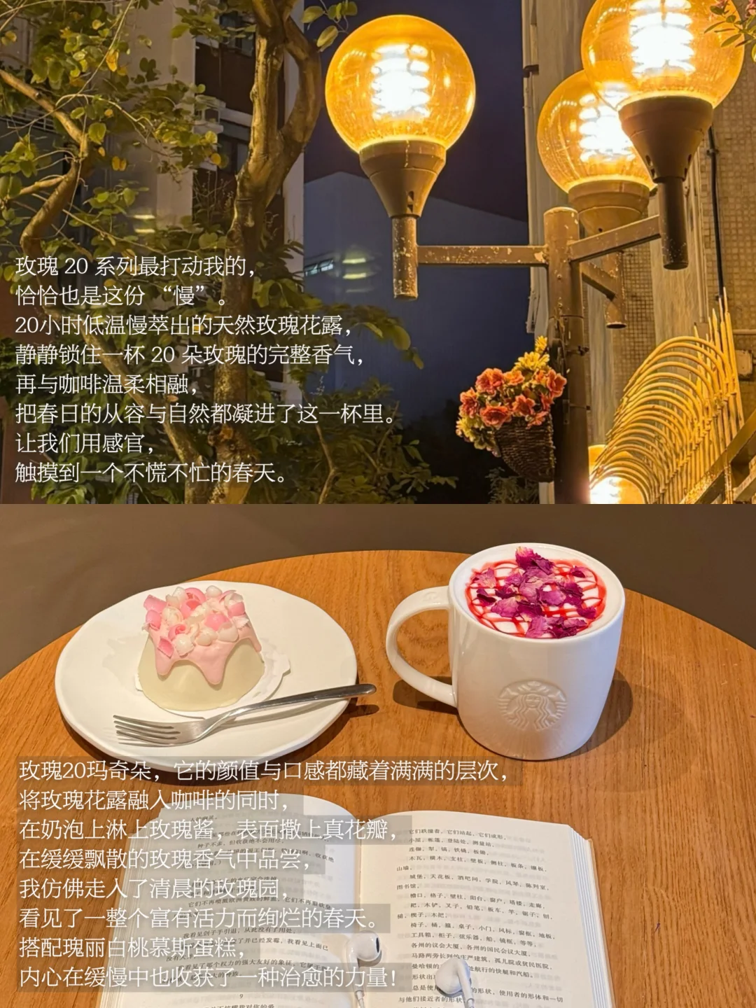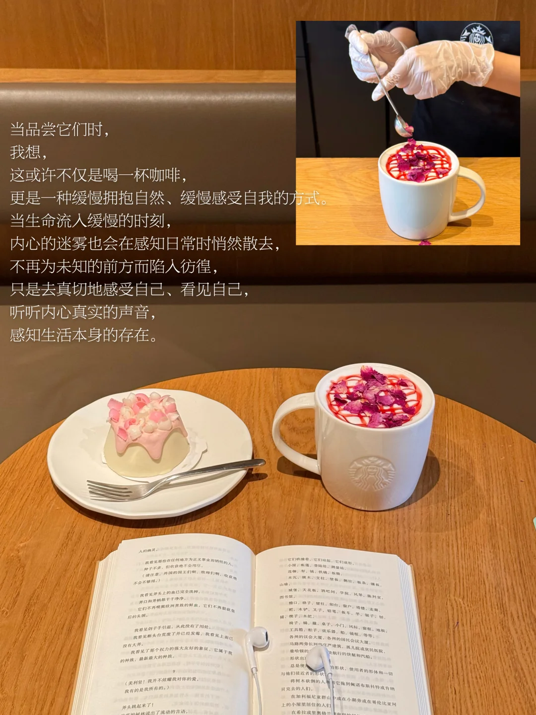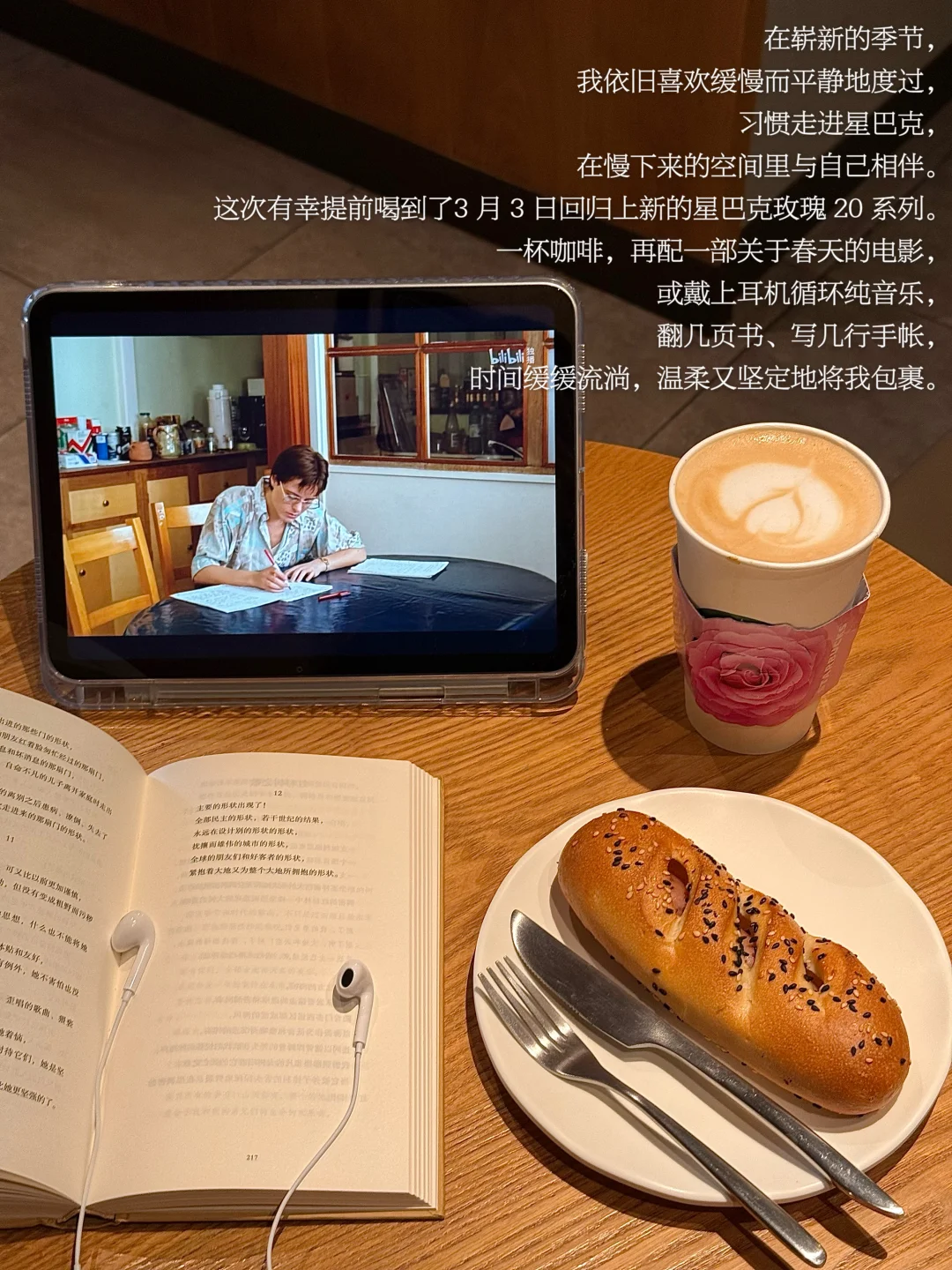 在崭新的季节,我依旧喜欢缓慢而平静地度过,习惯走进星巴克,在慢下来的空间里与自己相伴。今天喝到了星巴克上新的星巴克玫瑰 20 系列。一杯咖啡,再配一部关于春天的电影,循环一首纯音乐,翻几页书、写几行手帐,时间缓缓流淌,温柔又坚定地将我包裹。