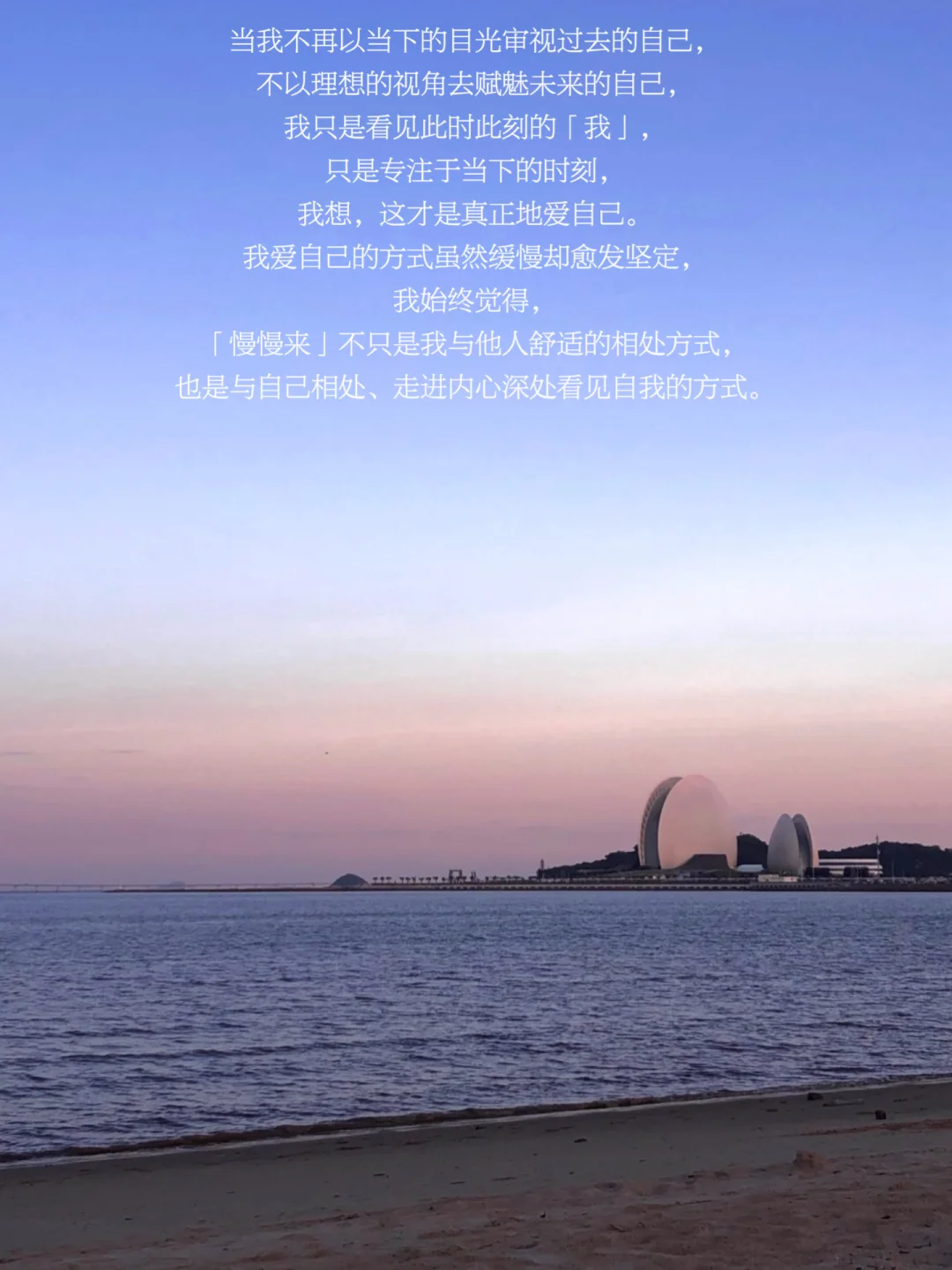 当我不再以当下的目光审视过去的自己,不以理想的视角去赋魅未来的自己,而是专注此刻,看见并接纳此时此刻的自己。我想,这才是真正地爱自己。