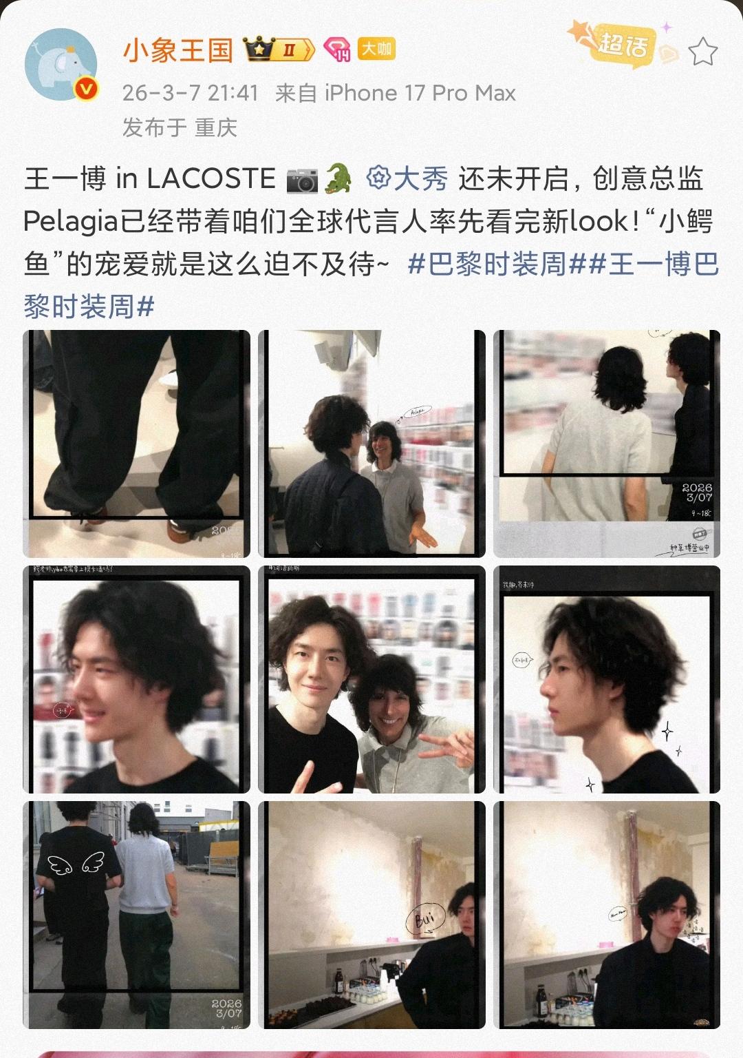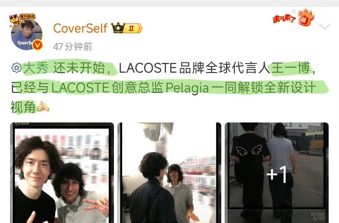又是没见过的顶级巨星的排面和待遇——大秀还未开启,创意总监已经带着自家全球代言人率先看完新look! “你们见过哪个品牌总监在秀前,把代言人拉去幕后,先把全系列欣赏一遍啊!” 现在,Lacoste不就是让你们见到了吗?[灵光一闪] 没有什么不可能,因为他是王一博,他总是在打破固有,创造“新历史”! 王一博