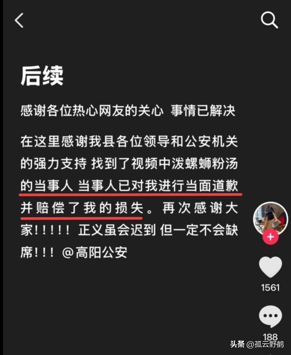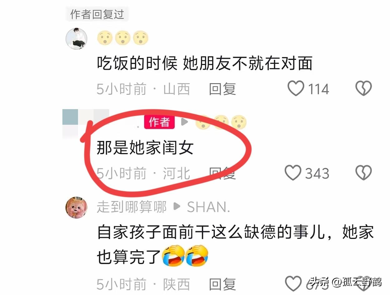 破案了!万万没想到坐在泼汤女前面的不是她朋友,而是她的闺女!!! 近日,河北保定一大姐因她人拿了她占座的凳子,竟趁对方吃饭时,将螺蛳粉汤一勺又一勺泼进其衣帽里,酸笋的刺鼻气味、浓稠的油污浸透衣物,监控里她嘴角那抹不屑的笑,被网友痛批“全网丢人”,“这不是脾气差,是单纯的坏!” 甚至连坐在这位大姐对面的女子网传是其朋友也被牵连,结果被大姐泼螺蛳粉汤的受害人却爆料称: “不是朋友,那是她家闺女!”此消息一出,评论区炸了 看这位大姐年龄也有40来岁了吧,那么她的闺女也有十几岁了,应该还在上学,初中或者高中生,难怪当时怎么没有制止大姐这行为,真是不是一家人不进一家门啊!这下真是丢脸丢大发了! 有网友说: “自家孩子面前干这么缺德的事儿,她家也算完了!”