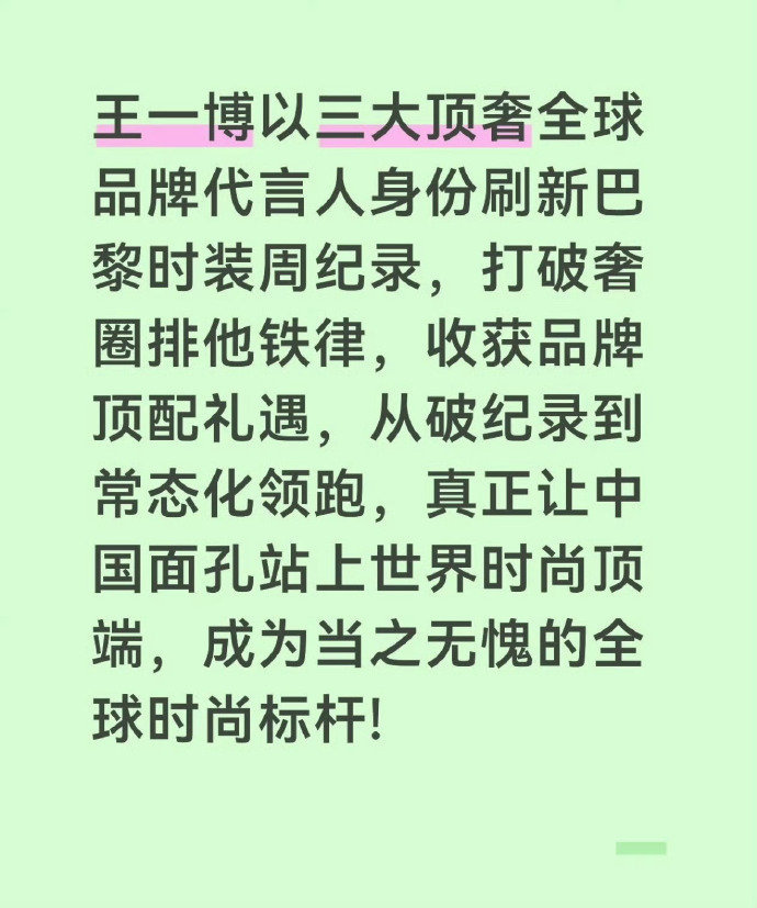 王一博巴黎时装周全球第一待遇 王一博顶级魅魔王一博顶级魅魔,王一博巴黎时装周全球第一待遇,咱就说我们的一博的魅力还在上升,咱就说一博往那一站就是焦点,天生的气场谁能不爱呢~ 王一博 巴黎也有回南天