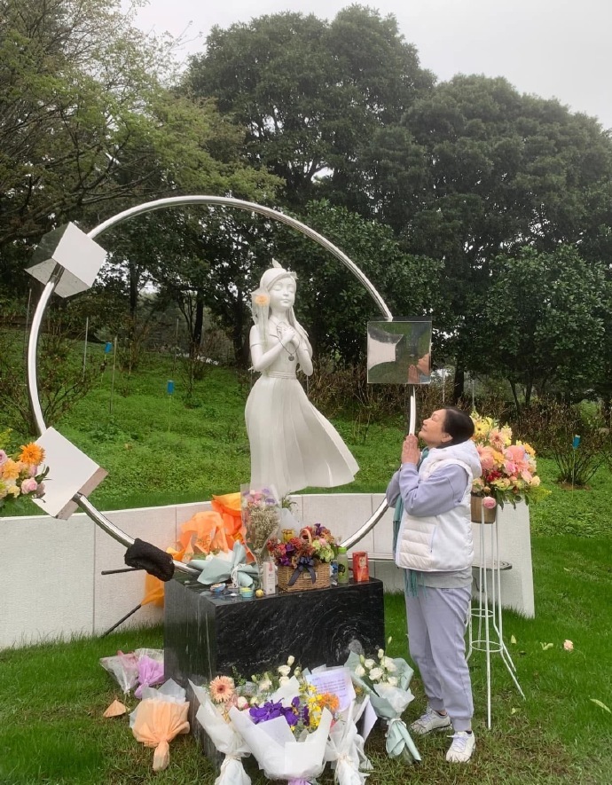 S妈去看大S了S妈晒大S雕像 S妈晒大S雕像,说还看到了很多粉丝来送花看大S,会