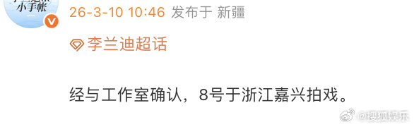对接称李兰迪8号在浙江嘉兴拍戏李兰迪对接回应ip 10日,网传张新成 李兰迪同为浙江IP、感情复合,李兰迪对接发文回应:“经与工作室确认,8号于浙江嘉兴拍戏。 ”