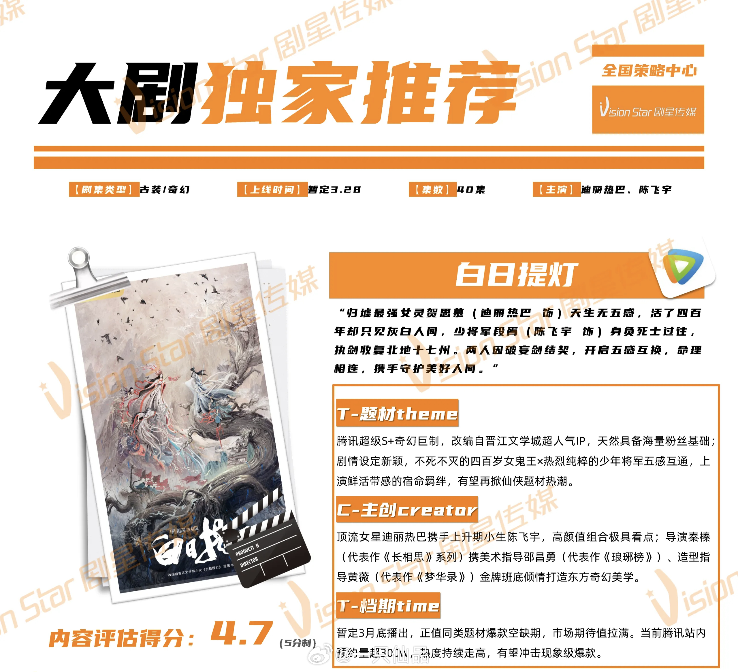 迪丽热巴 白日提灯开启双招商,本月内播出。期待贺思慕