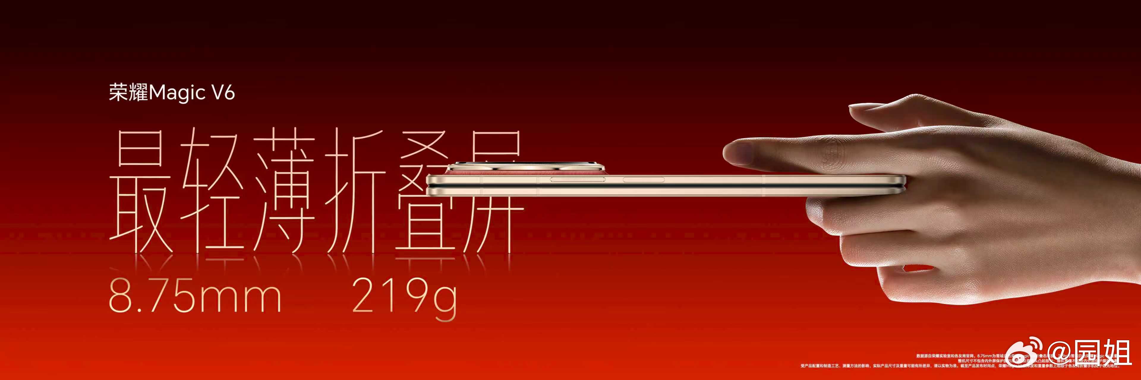 #荣耀Magic V6# 折叠形态下薄至8.75毫米,轻至219g,展开状态下的