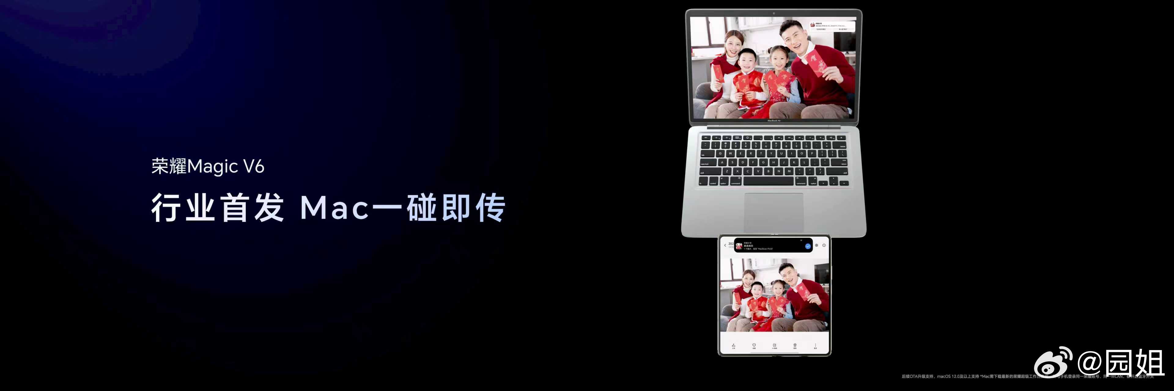 #荣耀Magic V6# 也是Mac的折叠屏好搭子。通过行业首发的Mac一碰即传,并支持苹果办公三件套的编辑,展开秒变Mac扩展屏,还能一键登录iCloud查看相册。此外,还支持AirPods原生级体验、Apple Watch信息共享,此外 #荣耀MagicV6一键共享热点给iPhone#,无缝衔接苹果全家桶,跨生态连接不卡顿。