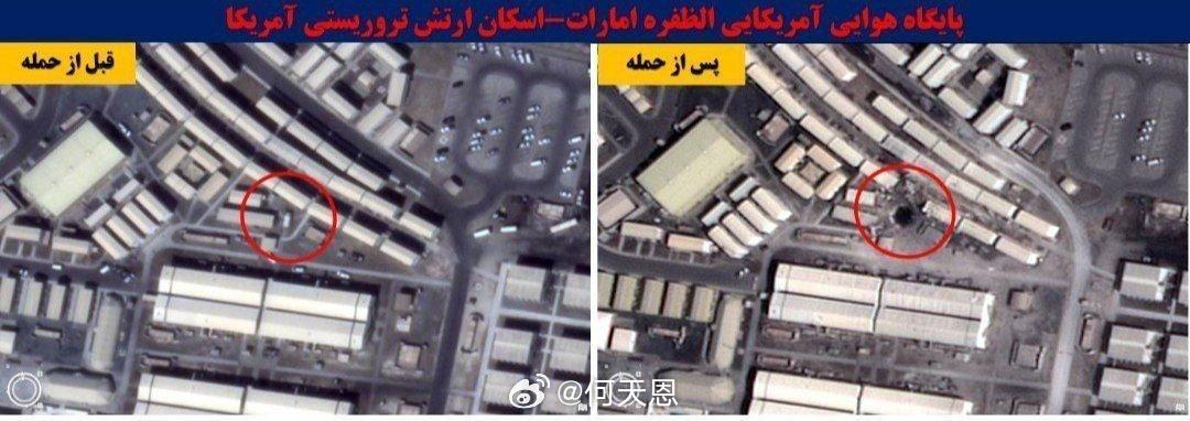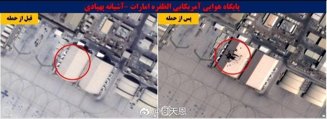 卫星图像显示,阿联酋的美国阿达法拉空军基地内多处建筑遭受了严重损毁,该基地曾多次成为伊朗无人机和导弹的攻击目标。